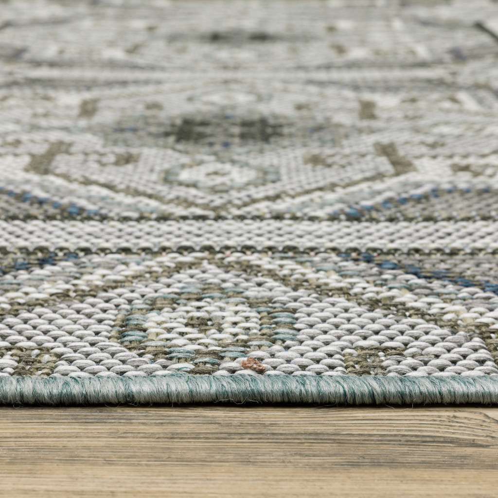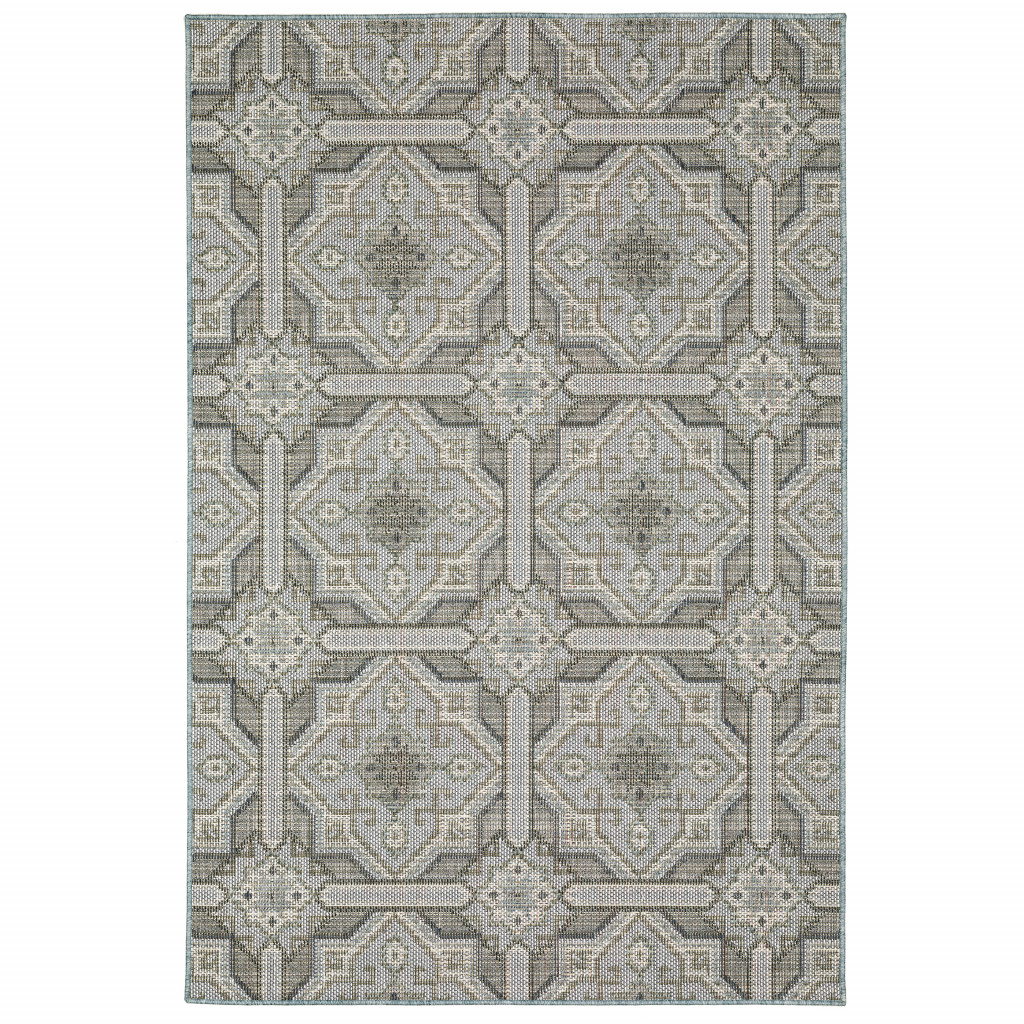 Add great coloration and comfortable texture to your space with this 10-foot x 13-foot blue and gray geometric stain resistant indoor outdoor area rug. This rectangle shaped rug features a geometric design in blue and gray to give it visual interest. A classic shape marries with good looking design for your space Ideal for spaces with kids and pets, this rug is stain resistant to help repel stains and spilled liquids. Place this area rug against a hardwood or tile floor and it will enliven your living space with style and sophistication. 0.12-inch H x 118.11-inch W x 153.54-inch D