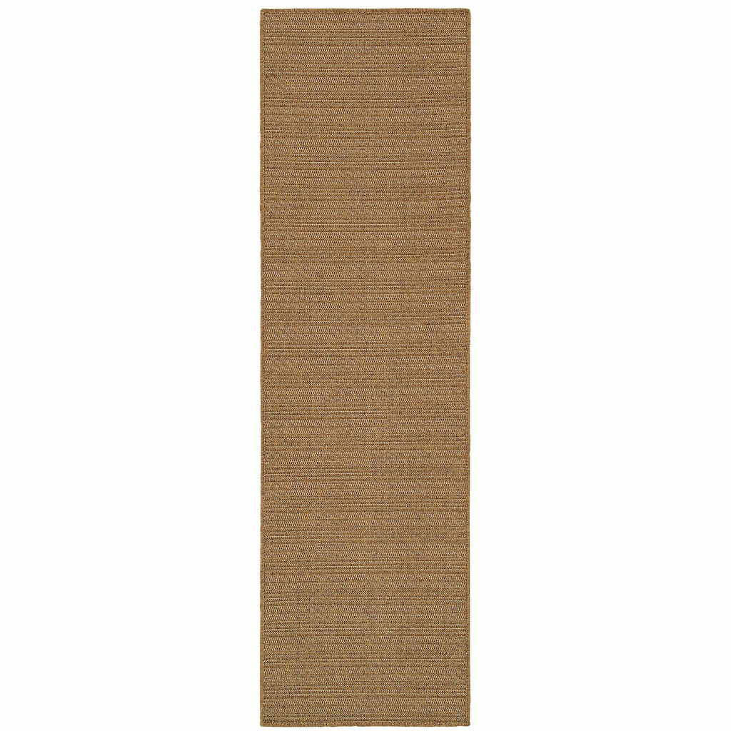 Add great coloration and comfortable texture to your space with this 2-foot x 8-foot tan striped stain resistant indoor outdoor area rug. This rectangle shaped rug features a striped design in tan to give it visual interest. A classic shape marries with good looking design for your space Ideal for spaces with kids and pets, this rug is stain resistant to help repel stains and spilled liquids. Place this area rug against a hardwood or tile floor and it will enliven your living space with style and sophistication. 0.16-inch H x 26.77-inch W x 90.55-inch D