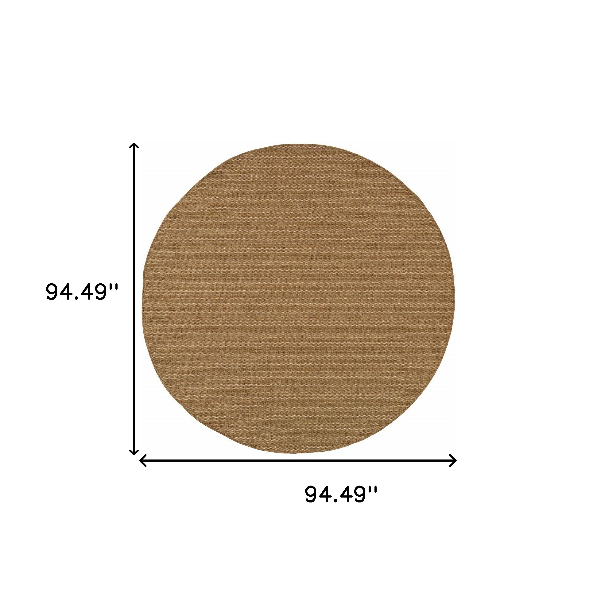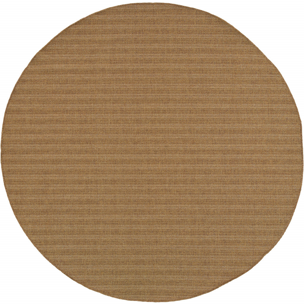 Add great coloration and comfortable texture to your space with this 8-foot x 8-foot tan round striped stain resistant indoor outdoor area rug. This geometric round shaped rug features a striped pattern in tan that combines a good looking print with a unique and updated shape. The mix of shape, color, and design gives this rug refreshing visual interest. Ideal for spaces with kids and pets, this rug is stain resistant to help repel stains and spilled liquids. Area Rugs help to give warmth and sense of home to your space. 0.16-inch H x 94.49-inch W x 94.49-inch D