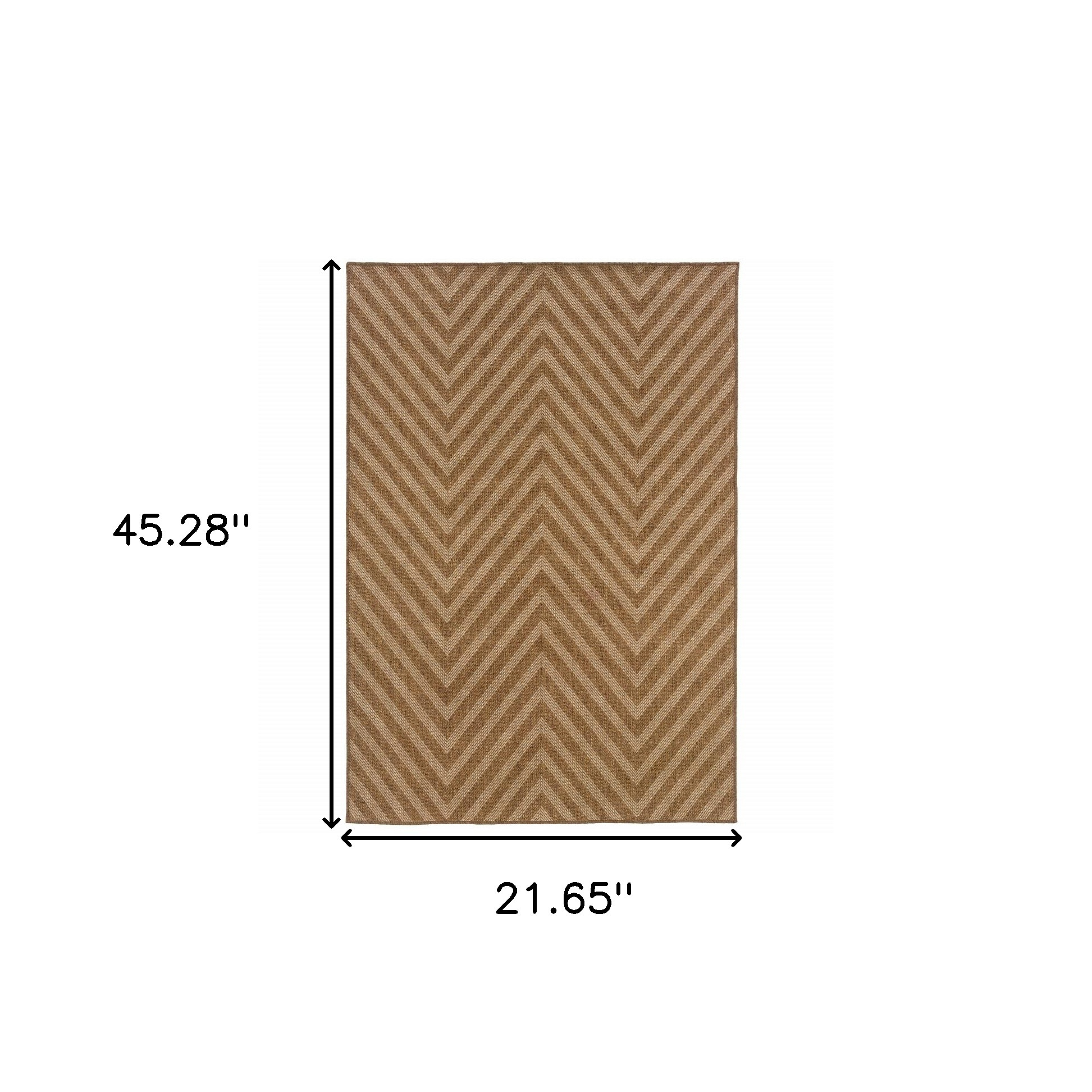 Set an inviting tone in your space with this 2-foot x 4-foot tan geometric stain resistant indoor outdoor area rug. This rectangle shaped rug features a geometric design in tan to give it visual interest. A classic shape marries with good looking design for your space Ideal for spaces with kids and pets, this rug is stain resistant to help repel stains and spilled liquids. Place this area rug against a hardwood or tile floor and it will enliven your living space with style and sophistication. 0.16-inch H x 21.65-inch W x 45.28-inch D