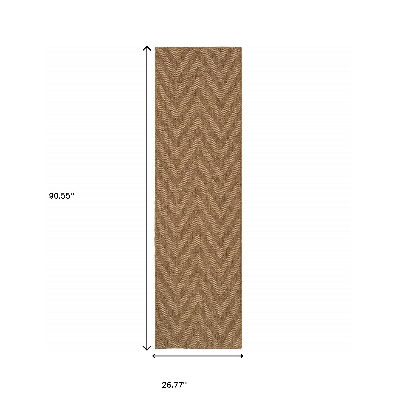 Add some artistry to your room with this 2-foot x 8-foot tan geometric stain resistant indoor outdoor area rug. This rectangle shaped rug features a geometric design in tan to give it visual interest. A classic shape marries with good looking design for your space Ideal for spaces with kids and pets, this rug is stain resistant to help repel stains and spilled liquids. Place this area rug against a hardwood or tile floor and it will enliven your living space with style and sophistication. 0.16-inch H x 26.77-inch W x 90.55-inch D