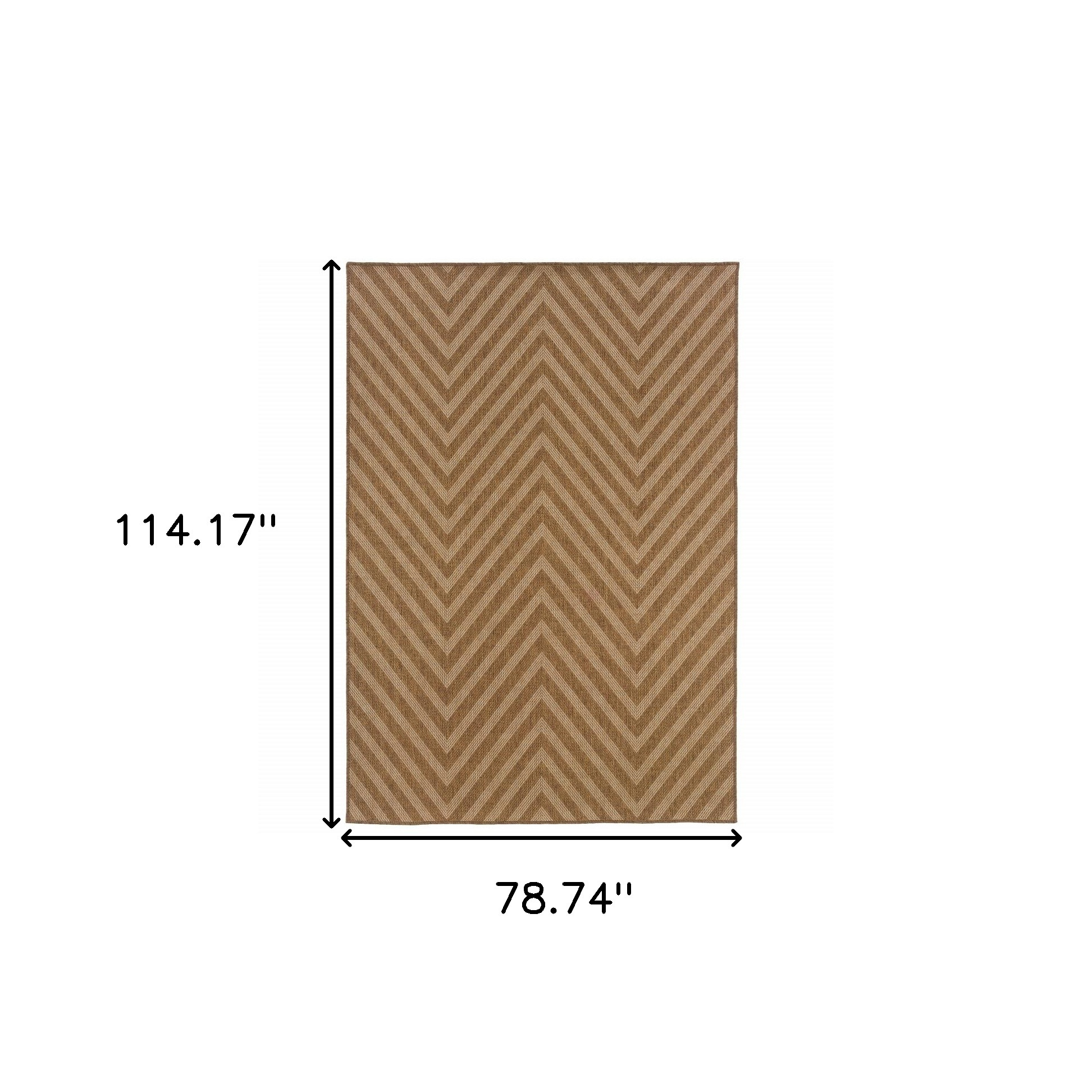 Add some artistry to your room with this 7-foot x 10-foot tan geometric stain resistant indoor outdoor area rug. This rectangle shaped rug features a geometric design in tan to give it visual interest. A classic shape marries with good looking design for your space Ideal for spaces with kids and pets, this rug is stain resistant to help repel stains and spilled liquids. Area Rugs help to give warmth and sense of home to your space. 0.16-inch H x 78.74-inch W x 114.17-inch D