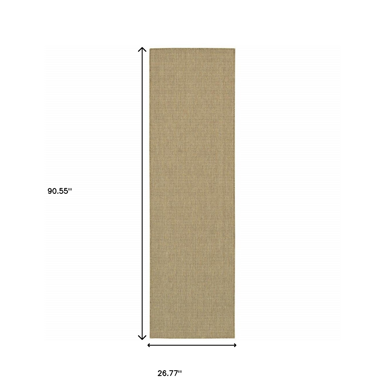 This 2-foot x 8-foot beige stain resistant indoor outdoor area rug, is a great way to add warmth to a room. This rectangle shaped rug flaunts a beige color that will be a great way to accent your space. Solid colors are versatile and will blend with any existing decor style. Ideal for spaces with kids and pets, this rug is stain resistant to help repel stains and spilled liquids. Area Rugs help to give warmth and sense of home to your space. 0.16-inch H x 26.77-inch W x 90.55-inch D