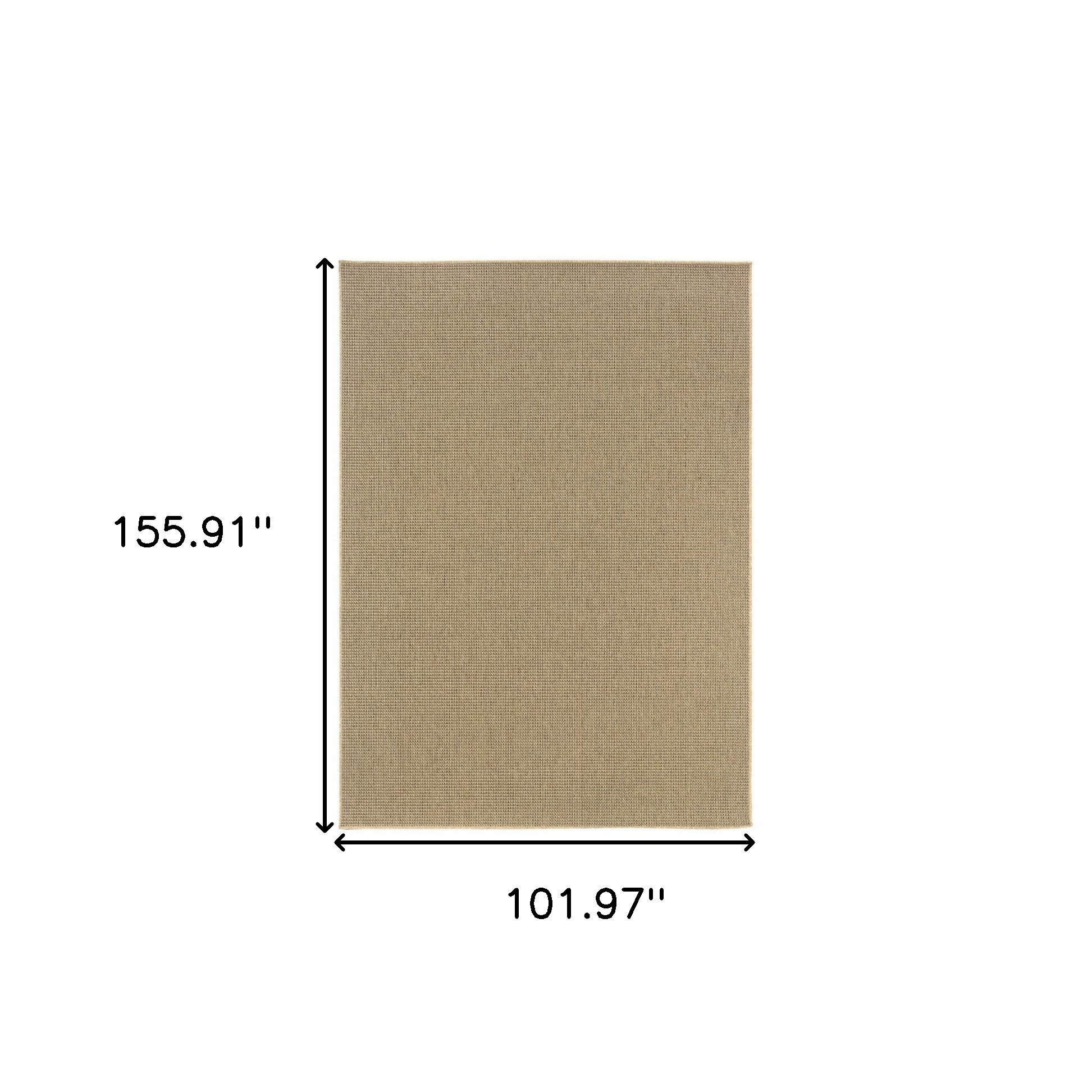 Add some artistry to your room with this 9-foot x 13-foot beige stain resistant indoor outdoor area rug. This rectangle shaped rug flaunts a beige color that will be a great way to accent your space. Solid colors are versatile and will blend with any existing decor style. Ideal for spaces with kids and pets, this rug is stain resistant to help repel stains and spilled liquids. Place this area rug against a hardwood or tile floor and it will enliven your living space with style and sophistication. 0.16-inch H x 101.97-inch W x 155.91-inch D
