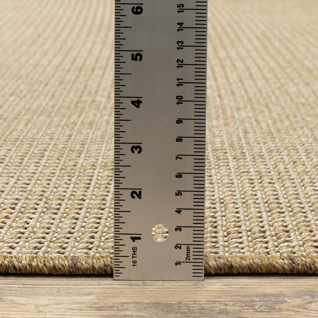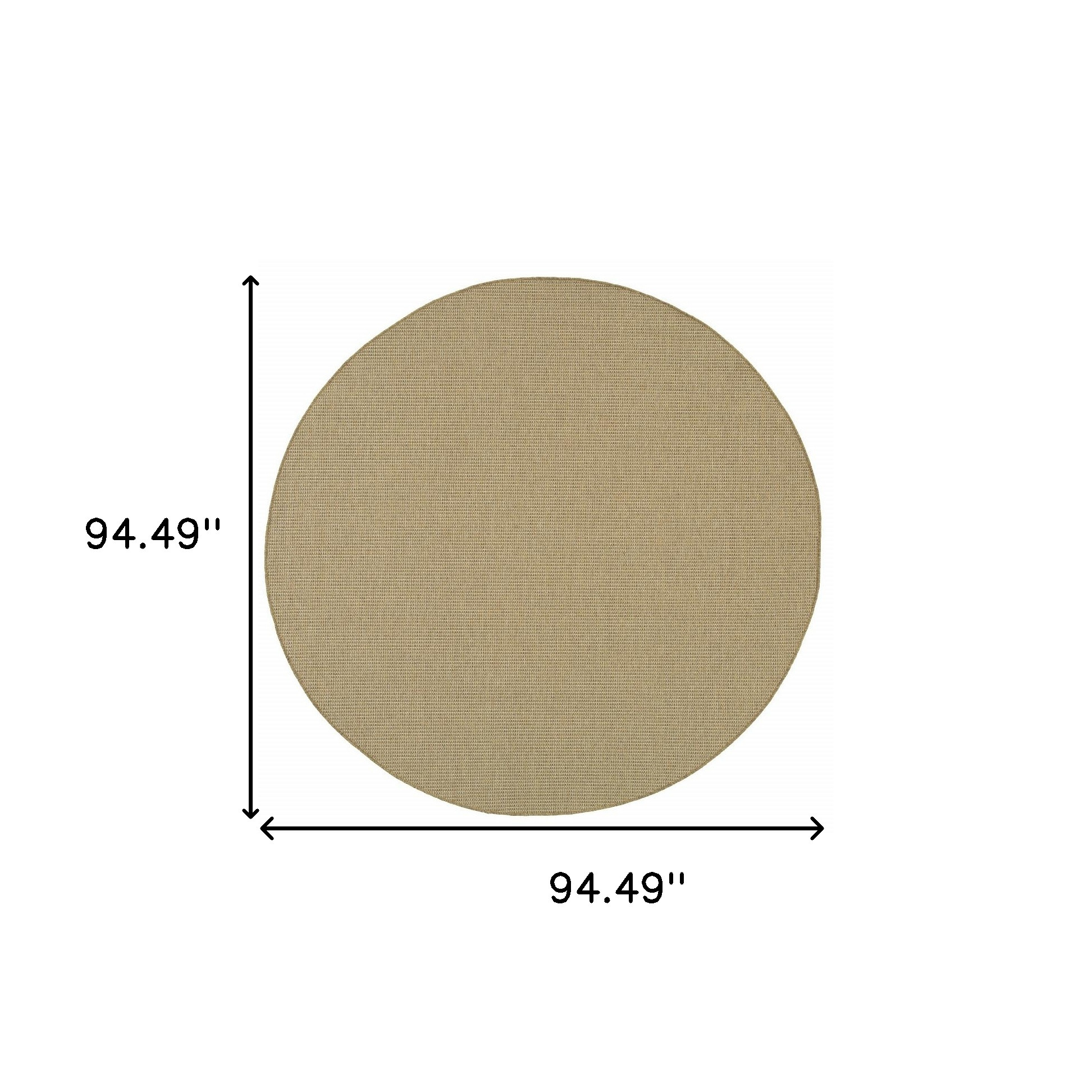 Add some artistry to your room with this 8-foot x 8-foot beige round stain resistant indoor outdoor area rug. This geometric round shaped rug features a solid color that combines hue and shape for a great look. Solid colors are versatile and will blend with any existing decor style. Ideal for spaces with kids and pets, this rug is stain resistant to help repel stains and spilled liquids. Place this area rug against a hardwood or tile floor and it will enliven your living space with style and sophistication. 0.16-inch H x 94.49-inch W x 94.49-inch D