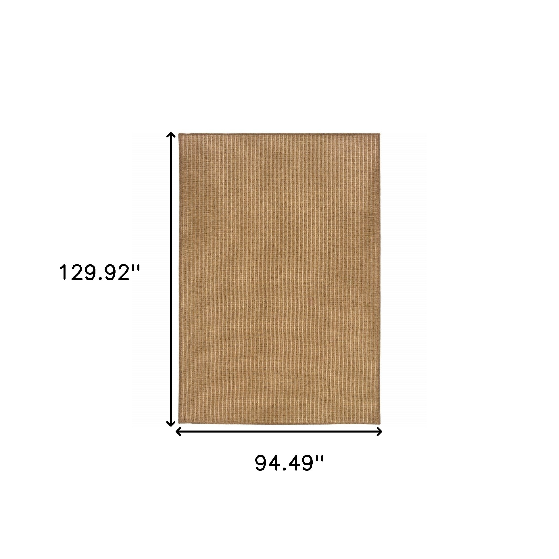 Set an inviting tone in your space with this 8-foot x 11-foot tan striped stain resistant indoor outdoor area rug. This rectangle shaped rug features a striped design in tan to give it visual interest. A classic shape marries with good looking design for your space Ideal for spaces with kids and pets, this rug is stain resistant to help repel stains and spilled liquids. Place this area rug against a hardwood or tile floor and it will enliven your living space with style and sophistication. 0.16-inch H x 94.49-inch W x 129.92-inch D