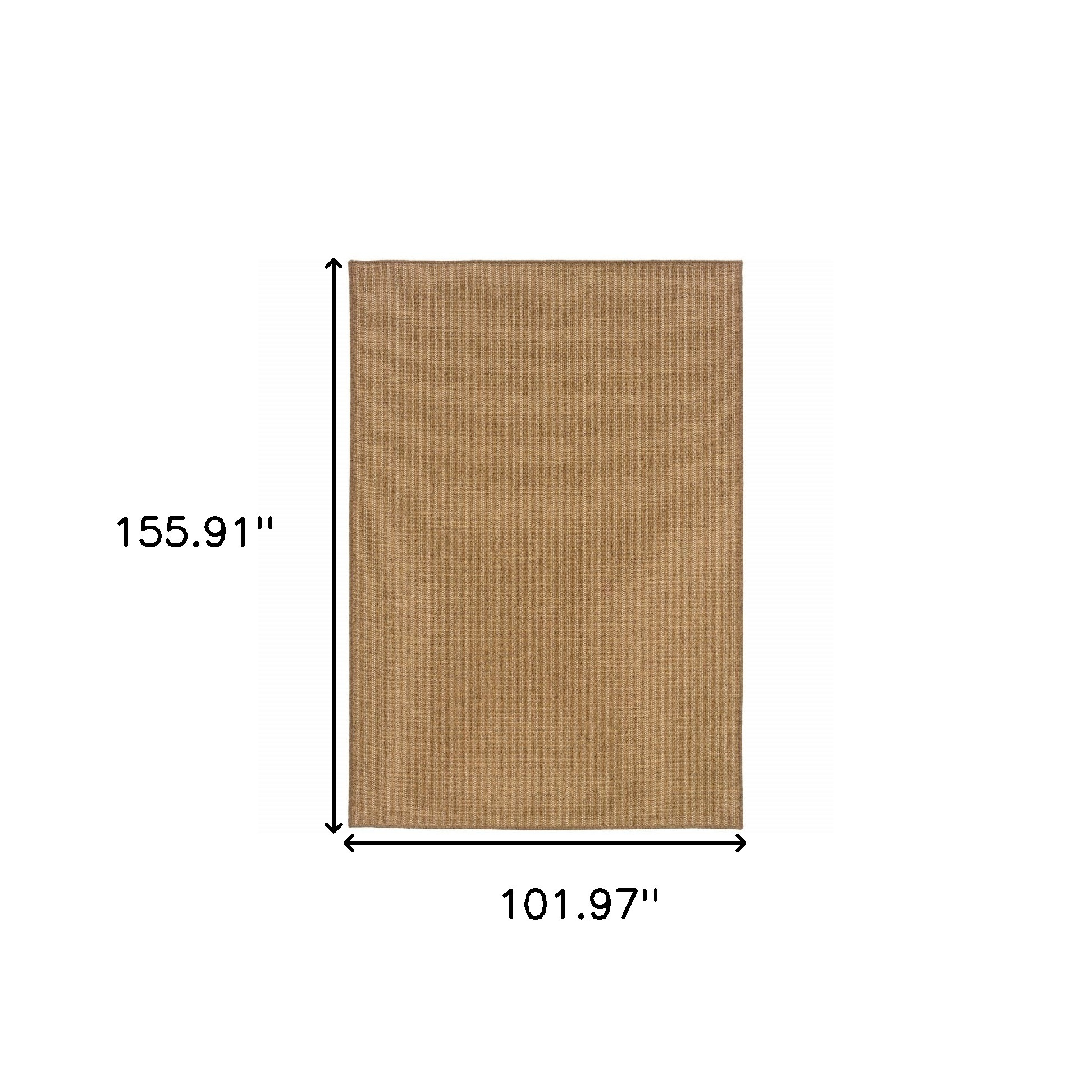 Add some artistry to your room with this 9-foot x 13-foot tan striped stain resistant indoor outdoor area rug. This rectangle shaped rug features a striped design in tan to give it visual interest. A classic shape marries with good looking design for your space Ideal for spaces with kids and pets, this rug is stain resistant to help repel stains and spilled liquids. Area Rugs help to give warmth and sense of home to your space. 0.16-inch H x 101.97-inch W x 155.91-inch D