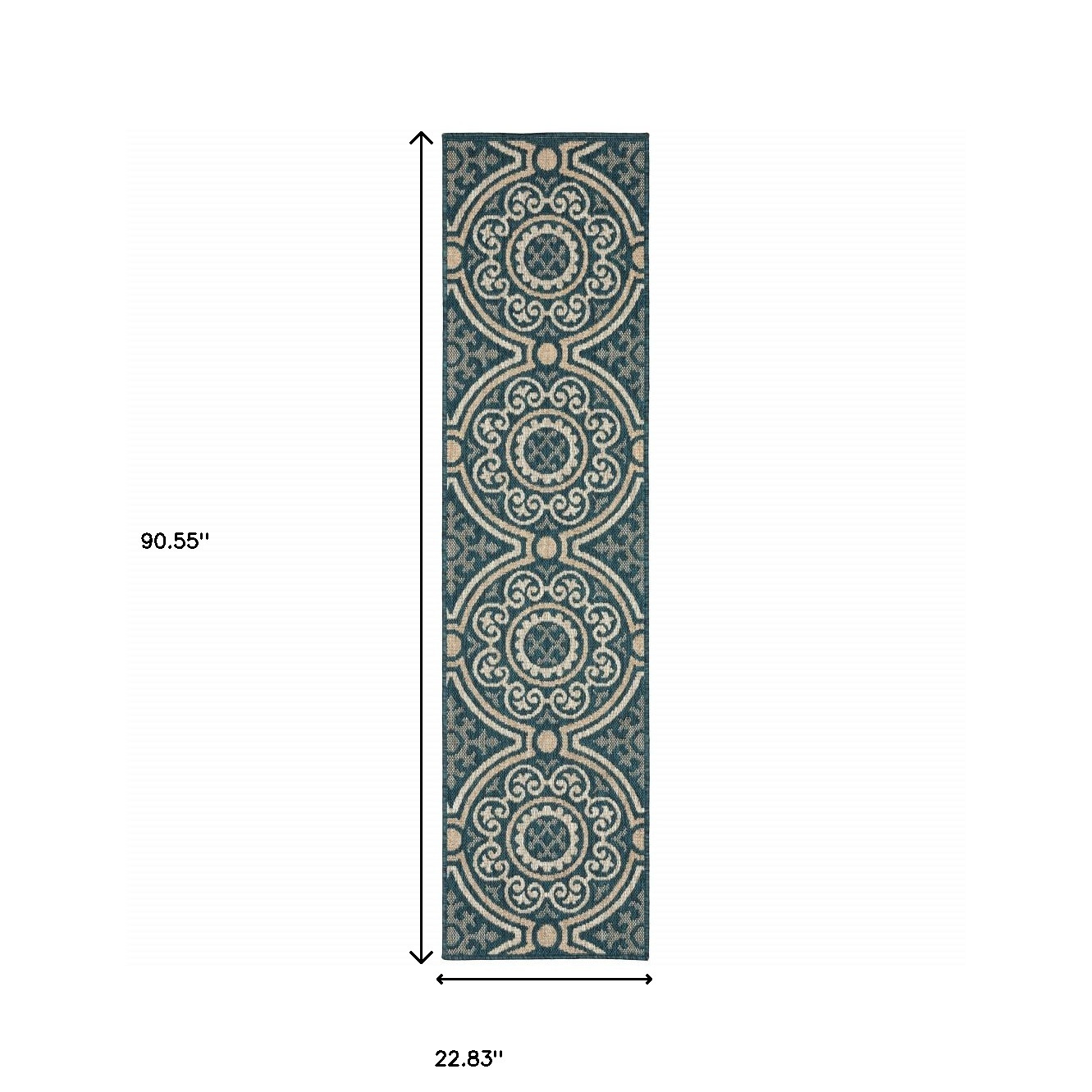 Add great coloration and comfortable texture to your space with this 2-foot x 8-foot blue and gray geometric stain resistant indoor outdoor area rug. This rectangle shaped rug features a geometric design in blue and gray to give it visual interest. A classic shape marries with good looking design for your space Ideal for spaces with kids and pets, this rug is stain resistant to help repel stains and spilled liquids. Area Rugs help to give warmth and sense of home to your space. 0.11-inch H x 22.83-inch W x 90.55-inch D