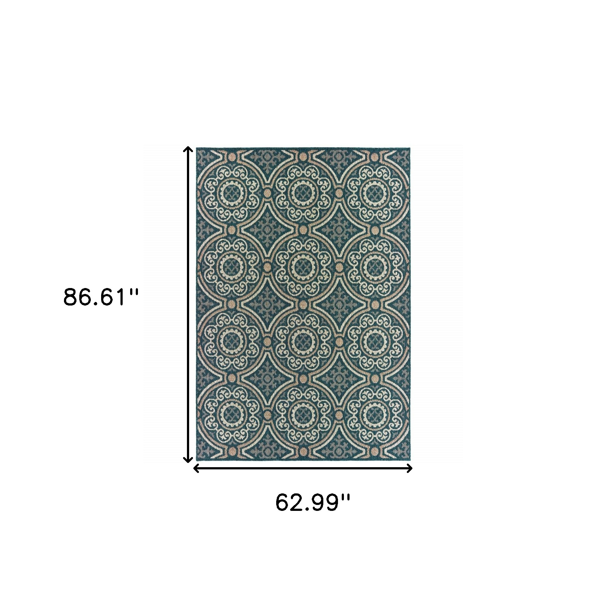 Set an inviting tone in your space with this 5-foot x 7-foot blue and gray geometric stain resistant indoor outdoor area rug. This rectangle shaped rug features a geometric design in blue and gray to give it visual interest. A classic shape marries with good looking design for your space Ideal for spaces with kids and pets, this rug is stain resistant to help repel stains and spilled liquids. Area Rugs help to give warmth and sense of home to your space. 0.11-inch H x 62.99-inch W x 86.61-inch D