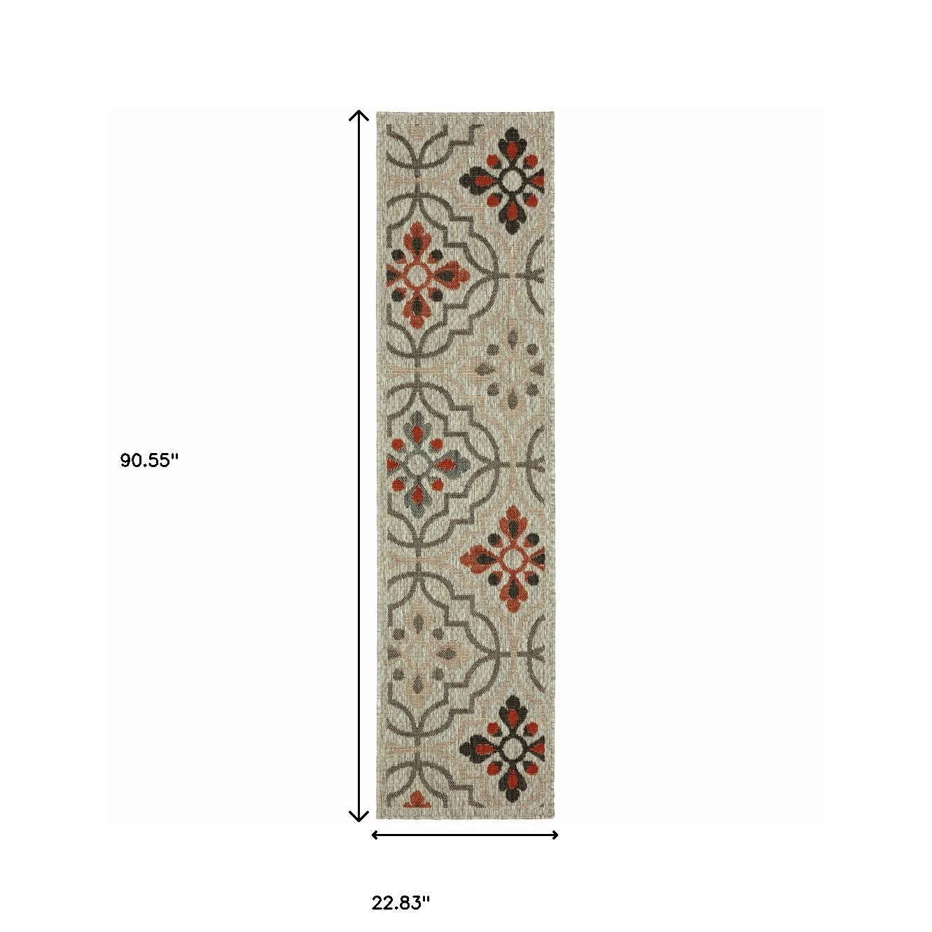 Add great coloration and comfortable texture to your space with this 2-foot x 8-foot gray geometric stain resistant indoor outdoor area rug. This rectangle shaped rug features a geometric design in gray to give it visual interest. A classic shape marries with good looking design for your space Ideal for spaces with kids and pets, this rug is stain resistant to help repel stains and spilled liquids. Place this area rug against a hardwood or tile floor and it will enliven your living space with style and sophistication. 0.11-inch H x 22.83-inch W x 90.55-inch D