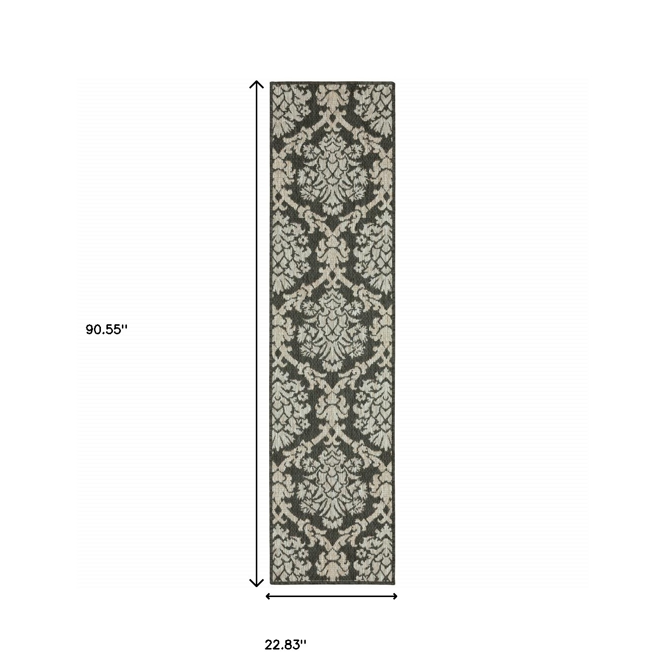Add some artistry to your room with this 2-foot x 8-foot gray floral stain resistant indoor outdoor area rug. This rectangle shaped rug features a floral design in gray to give it visual interest. A classic shape marries with good looking design for your space Ideal for spaces with kids and pets, this rug is stain resistant to help repel stains and spilled liquids. Place this area rug against a hardwood or tile floor and it will enliven your living space with style and sophistication. 0.11-inch H x 22.83-inch W x 90.55-inch D