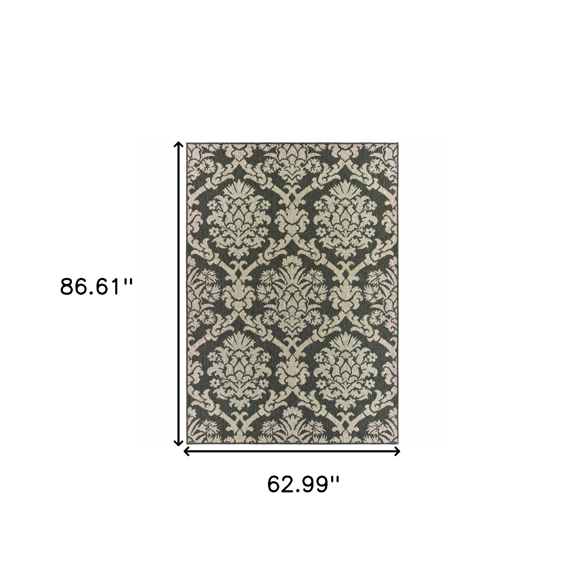 This 5-foot x 7-foot gray floral stain resistant indoor outdoor area rug, is a great way to add warmth to a room. This rectangle shaped rug features a floral design in gray to give it visual interest. A classic shape marries with good looking design for your space Ideal for spaces with kids and pets, this rug is stain resistant to help repel stains and spilled liquids. Area Rugs help to give warmth and sense of home to your space. 0.11-inch H x 62.99-inch W x 86.61-inch D