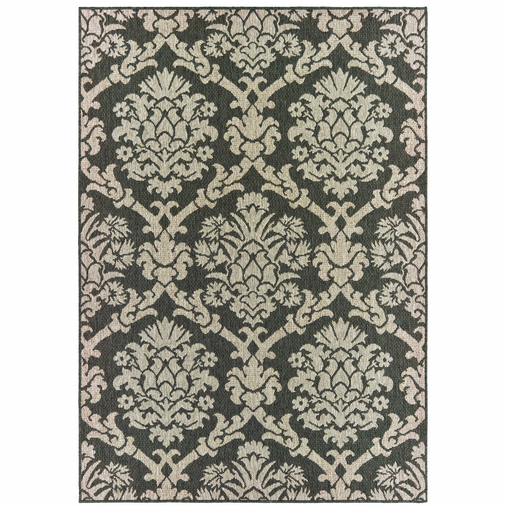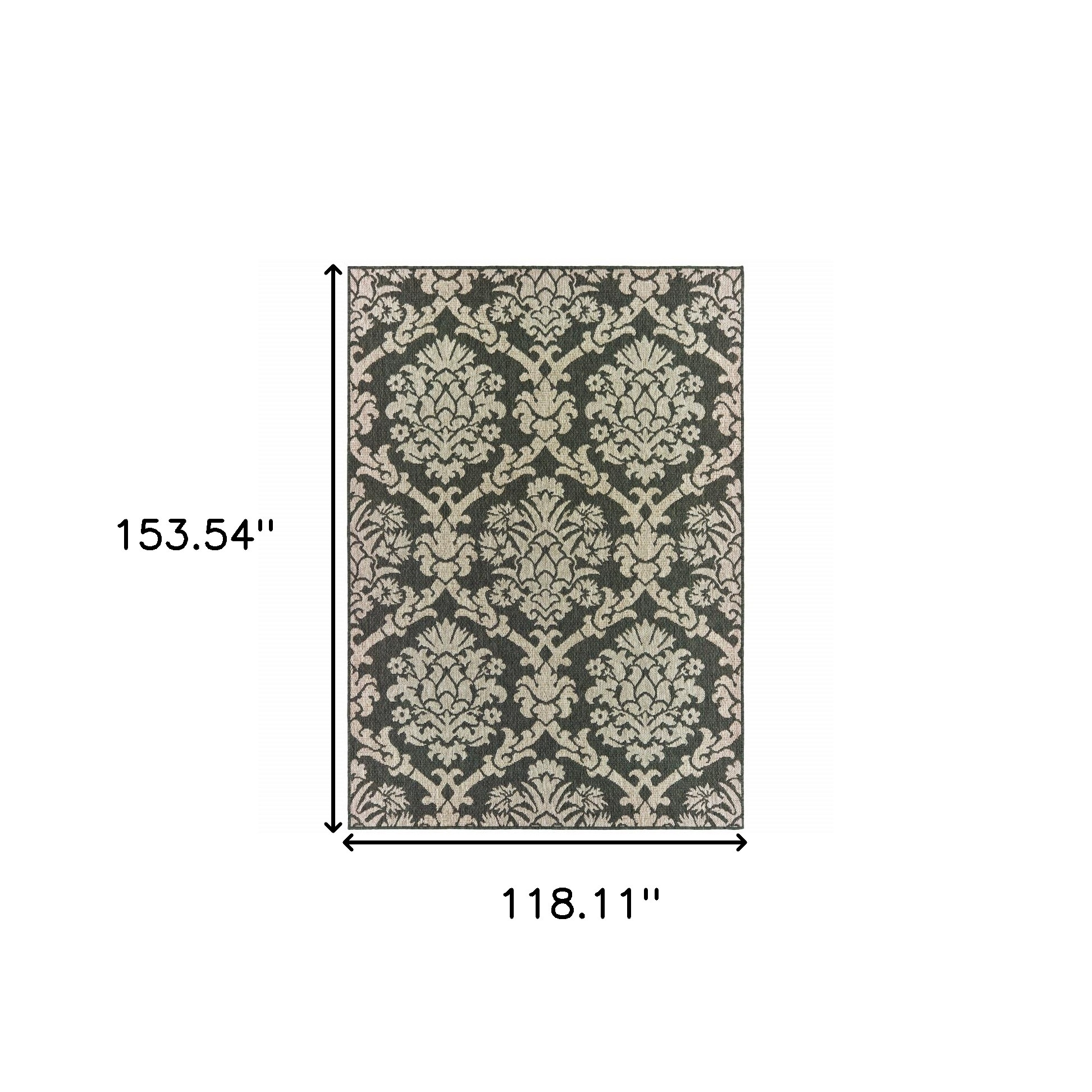 This 10-foot x 13-foot gray floral stain resistant indoor outdoor area rug, is a great way to add warmth to a room. This rectangle shaped rug features a floral design in gray to give it visual interest. A classic shape marries with good looking design for your space Ideal for spaces with kids and pets, this rug is stain resistant to help repel stains and spilled liquids. Area Rugs help to give warmth and sense of home to your space. 0.11-inch H x 118.11-inch W x 153.54-inch D