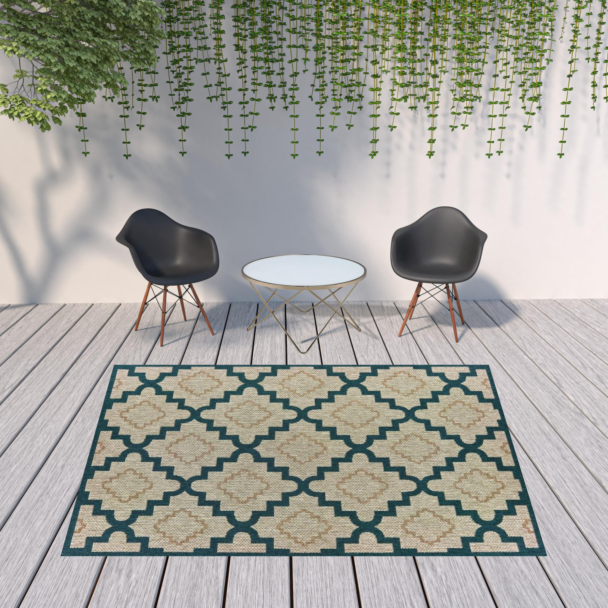Set an inviting tone in your space with this 8-foot x 10-foot blue and gray geometric stain resistant indoor outdoor area rug. This rectangle shaped rug features a geometric design in blue and gray to give it visual interest. A classic shape marries with good looking design for your space Ideal for spaces with kids and pets, this rug is stain resistant to help repel stains and spilled liquids. Place this area rug against a hardwood or tile floor and it will enliven your living space with style and sophistication. 0.11-inch H x 94.49-inch W x 120.08-inch D