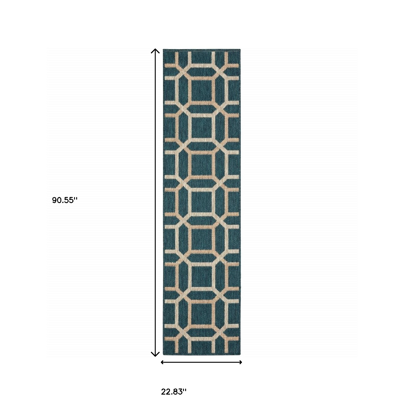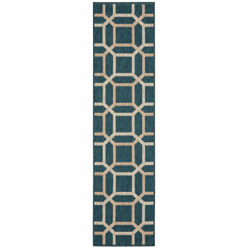 Add great coloration and comfortable texture to your space with this 2-foot x 8-foot blue and gray geometric stain resistant indoor outdoor area rug. This rectangle shaped rug features a geometric design in blue and gray to give it visual interest. A classic shape marries with good looking design for your space Ideal for spaces with kids and pets, this rug is stain resistant to help repel stains and spilled liquids. Area Rugs help to give warmth and sense of home to your space. 0.11-inch H x 22.83-inch W x 90.55-inch D
