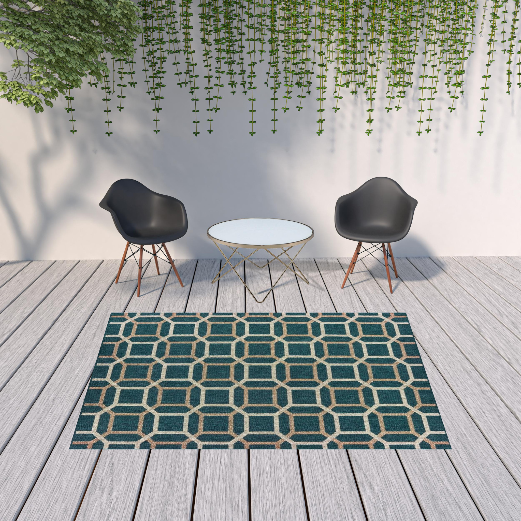 Add some artistry to your room with this 7-foot x 9-foot blue and gray geometric stain resistant indoor outdoor area rug. This rectangle shaped rug features a geometric design in blue and gray to give it visual interest. A classic shape marries with good looking design for your space Ideal for spaces with kids and pets, this rug is stain resistant to help repel stains and spilled liquids. Area Rugs help to give warmth and sense of home to your space. 0.11-inch H x 78.74-inch W x 110.24-inch D