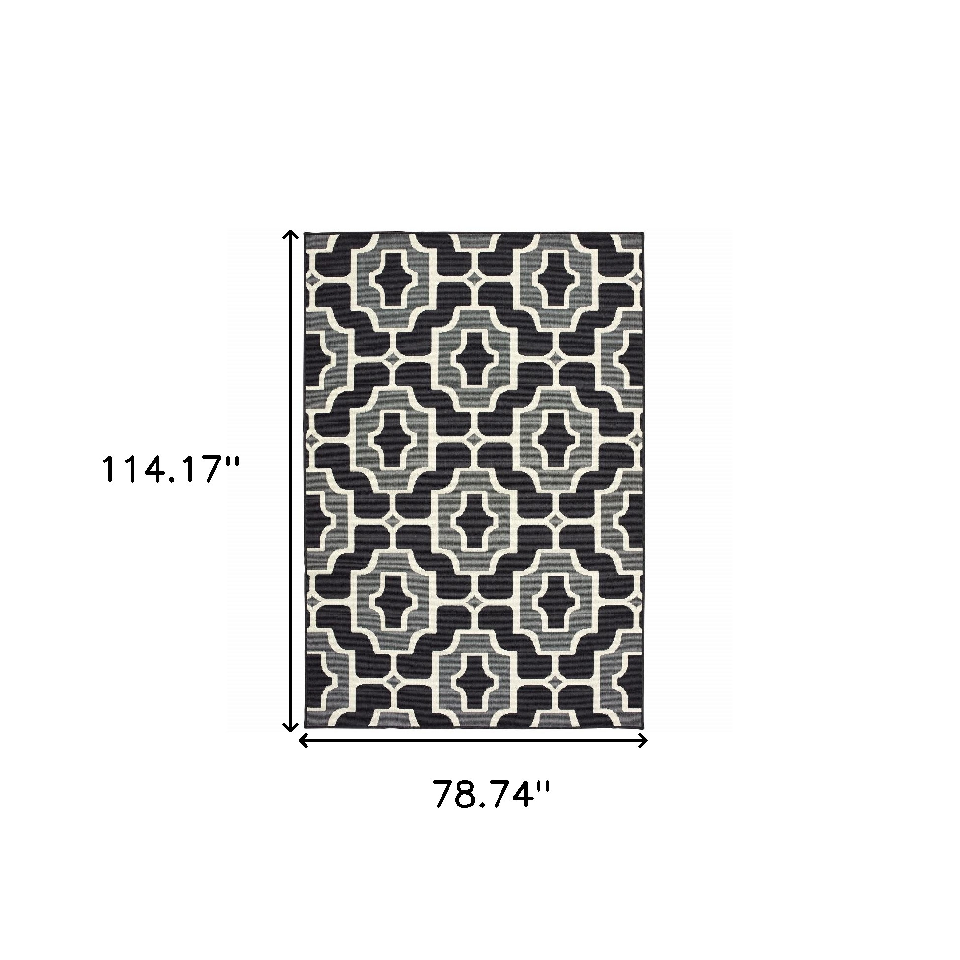 Add some artistry to your room with this 7-foot x 10-foot black and gray geometric stain resistant indoor outdoor area rug. This rectangle shaped rug features a geometric design in black and gray to give it visual interest. A classic shape marries with good looking design for your space Ideal for spaces with kids and pets, this rug is stain resistant to help repel stains and spilled liquids. Place this area rug against a hardwood or tile floor and it will enliven your living space with style and sophistication. 0.07-inch H x 78.74-inch W x 114.17-inch D