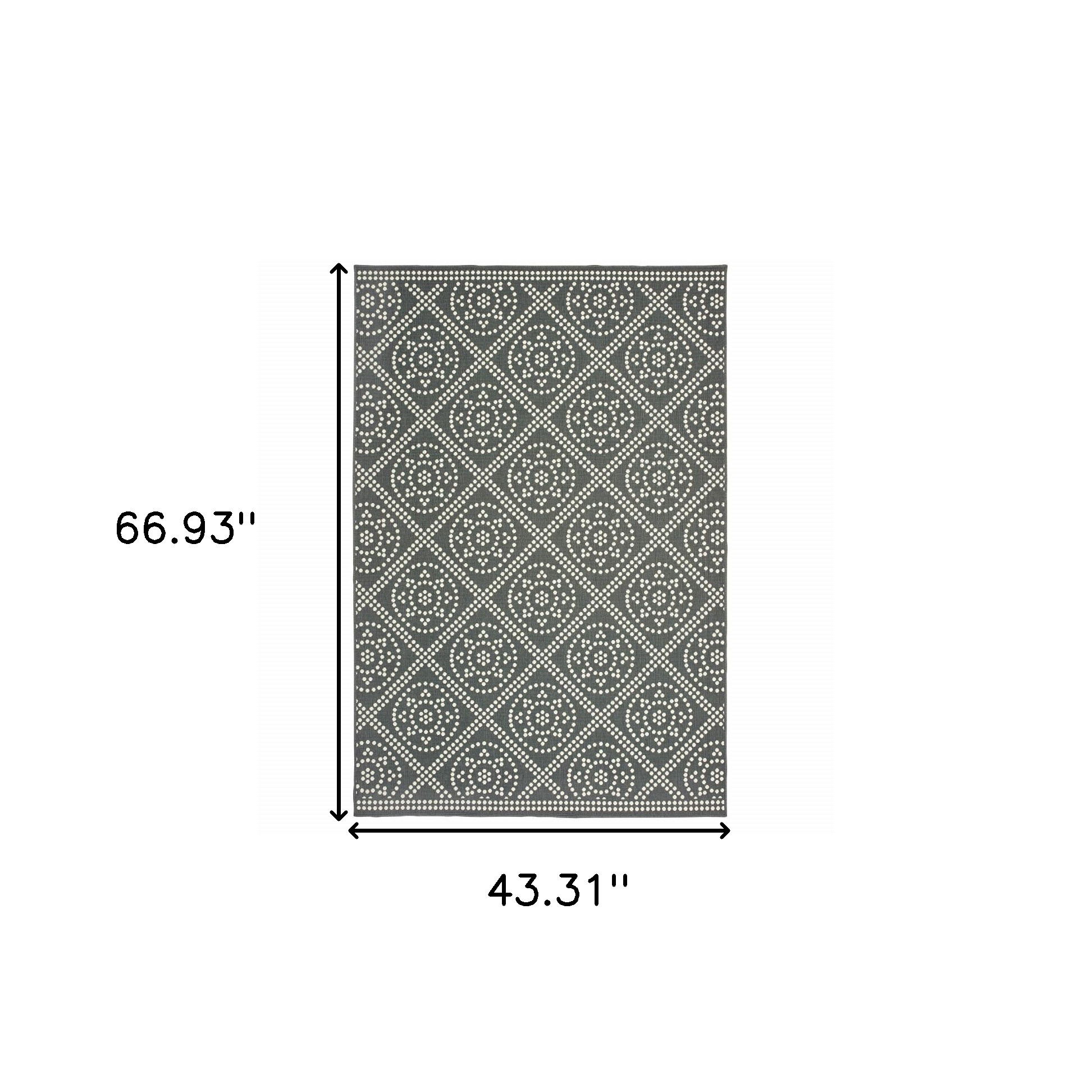 Set an inviting tone in your space with this 4-foot x 6-foot gray and ivory geometric stain resistant indoor outdoor area rug. This rectangle shaped rug features a geometric design in gray and ivory to give it visual interest. A classic shape marries with good looking design for your space Ideal for spaces with kids and pets, this rug is stain resistant to help repel stains and spilled liquids. Area Rugs help to give warmth and sense of home to your space. 0.07-inch H x 43.31-inch W x 66.93-inch D