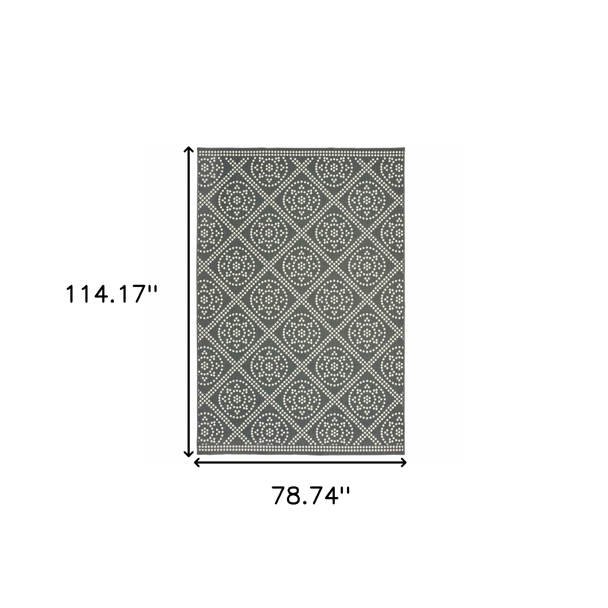 Set an inviting tone in your space with this 7-foot x 10-foot gray and ivory geometric stain resistant indoor outdoor area rug. This rectangle shaped rug features a geometric design in gray and ivory to give it visual interest. A classic shape marries with good looking design for your space Ideal for spaces with kids and pets, this rug is stain resistant to help repel stains and spilled liquids. Place this area rug against a hardwood or tile floor and it will enliven your living space with style and sophistication. 0.07-inch H x 78.74-inch W x 114.17-inch D