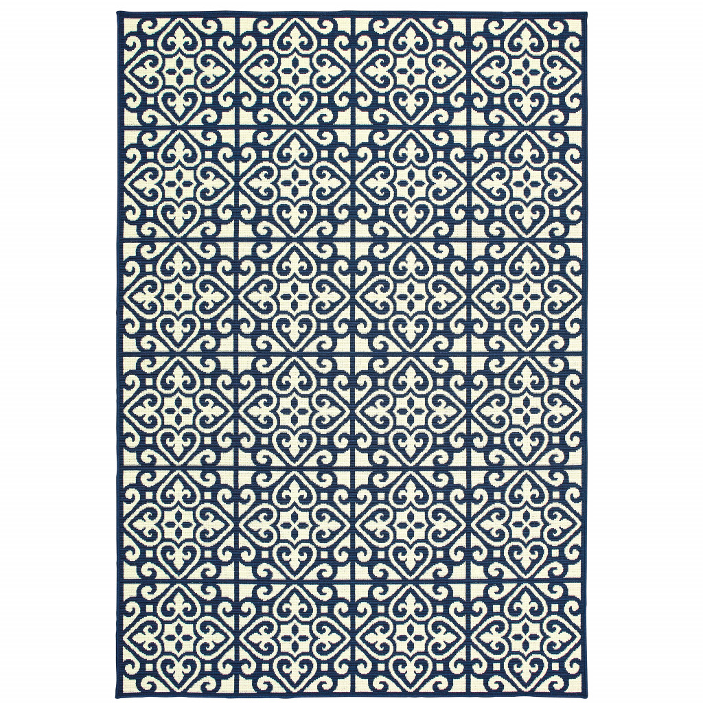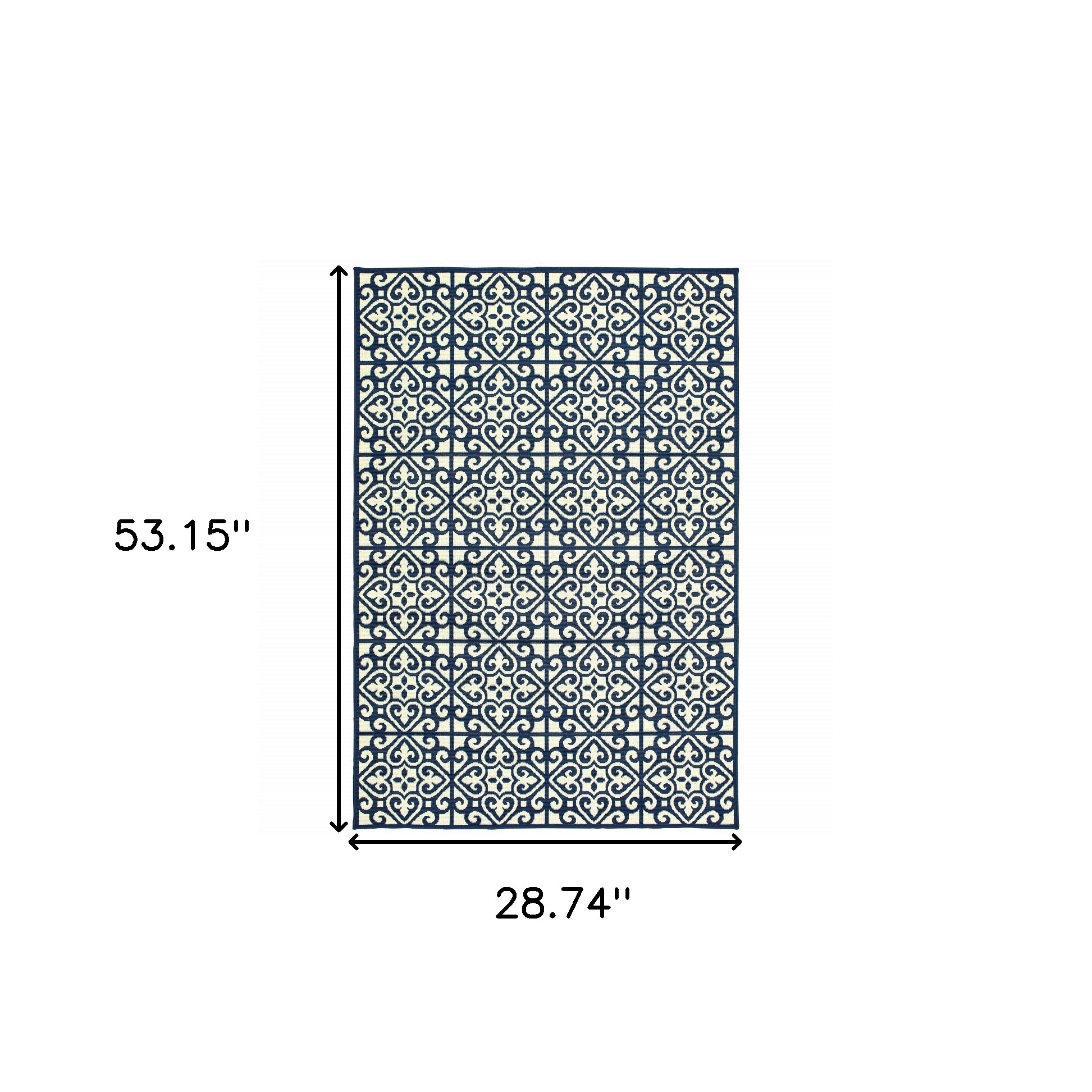 This 2-foot x 4-foot ivory and blue geometric stain resistant indoor outdoor area rug, is a great way to add warmth to a room. This rectangle shaped rug features a geometric design in ivory and blue to give it visual interest. A classic shape marries with good looking design for your space Ideal for spaces with kids and pets, this rug is stain resistant to help repel stains and spilled liquids. Area Rugs help to give warmth and sense of home to your space. 0.07-inch H x 28.74-inch W x 53.15-inch D