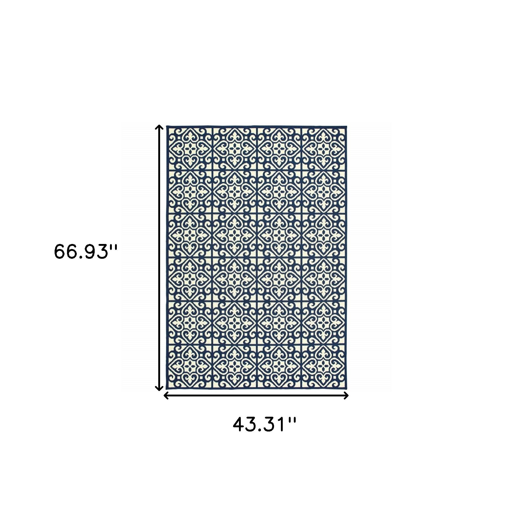 Add some artistry to your room with this 4-foot x 6-foot ivory and blue geometric stain resistant indoor outdoor area rug. This rectangle shaped rug features a geometric design in ivory and blue to give it visual interest. A classic shape marries with good looking design for your space Ideal for spaces with kids and pets, this rug is stain resistant to help repel stains and spilled liquids. Area Rugs help to give warmth and sense of home to your space. 0.07-inch H x 43.31-inch W x 66.93-inch D