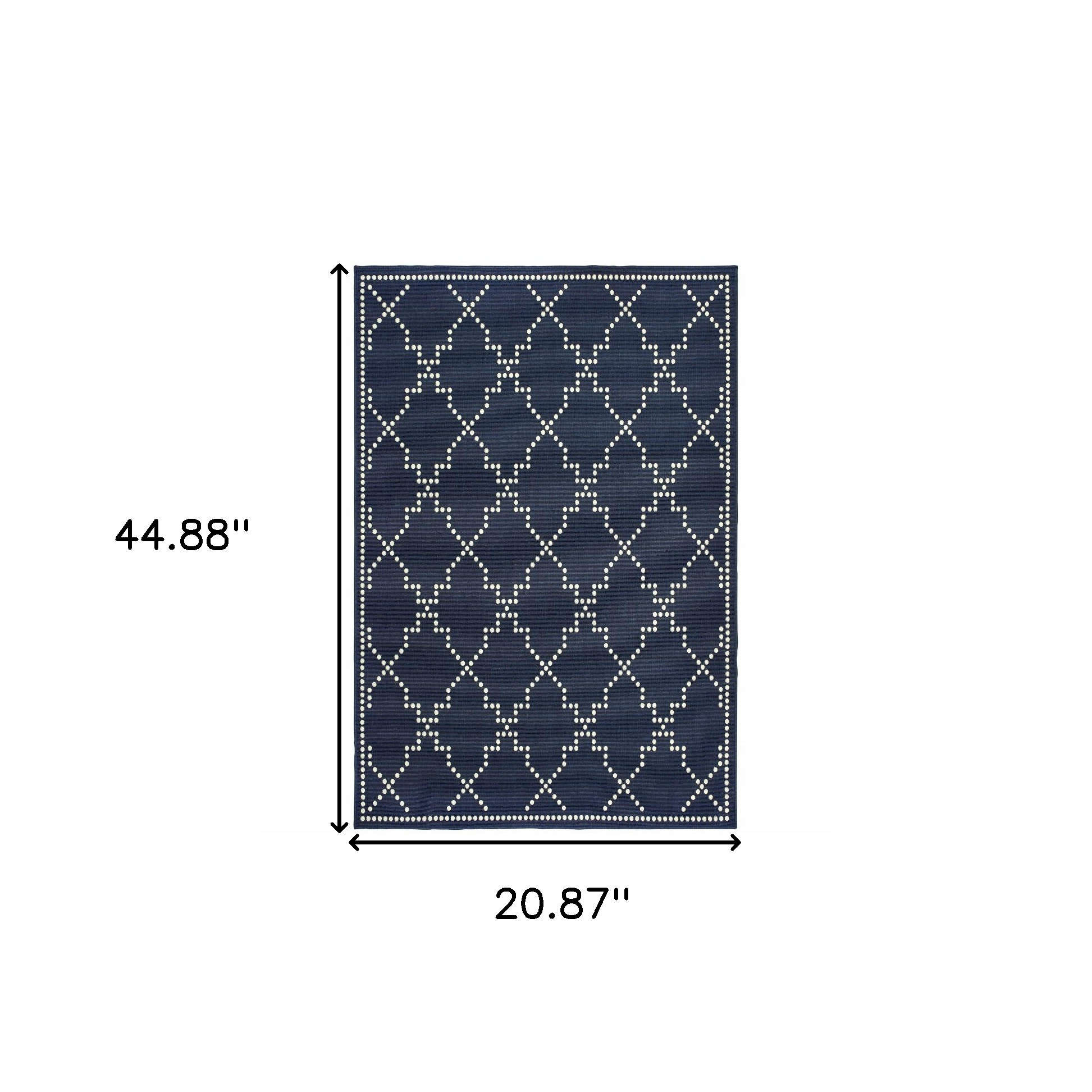 Set an inviting tone in your space with this 2-foot x 4-foot blue and ivory geometric stain resistant indoor outdoor area rug. This rectangle shaped rug features a geometric design in blue and ivory to give it visual interest. A classic shape marries with good looking design for your space Ideal for spaces with kids and pets, this rug is stain resistant to help repel stains and spilled liquids. Place this area rug against a hardwood or tile floor and it will enliven your living space with style and sophistication. 0.07-inch H x 20.87-inch W x 44.88-inch D