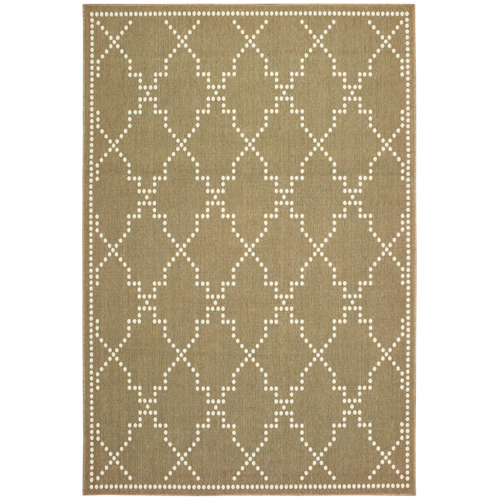 Add some artistry to your room with this 4-foot x 6-foot tan geometric stain resistant indoor outdoor area rug. This rectangle shaped rug features a geometric design in tan to give it visual interest. A classic shape marries with good looking design for your space Ideal for spaces with kids and pets, this rug is stain resistant to help repel stains and spilled liquids. Place this area rug against a hardwood or tile floor and it will enliven your living space with style and sophistication. 0.07-inch H x 43.31-inch W x 66.93-inch D