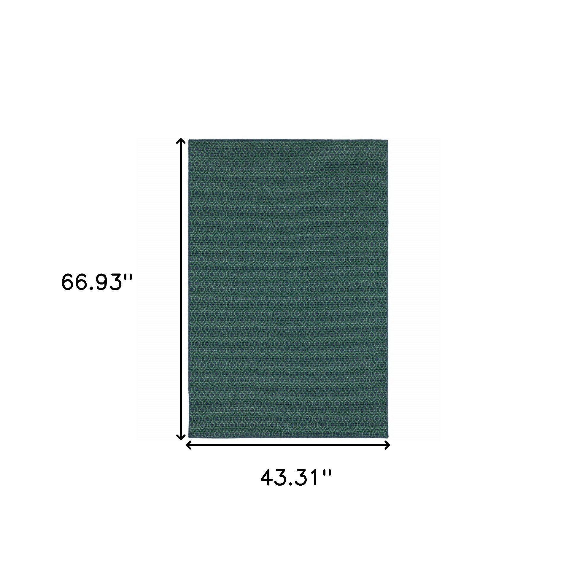 Set an inviting tone in your space with this 4-foot x 6-foot blue and green geometric stain resistant indoor outdoor area rug. This rectangle shaped rug features a geometric design in blue and green to give it visual interest. A classic shape marries with good looking design for your space Ideal for spaces with kids and pets, this rug is stain resistant to help repel stains and spilled liquids. Area Rugs help to give warmth and sense of home to your space. 0.15-inch H x 43.31-inch W x 66.93-inch D