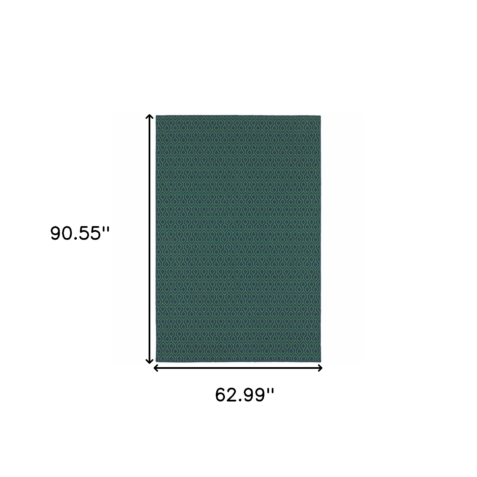 Set an inviting tone in your space with this 5-foot x 8-foot blue and green geometric stain resistant indoor outdoor area rug. This rectangle shaped rug features a geometric design in blue and green to give it visual interest. A classic shape marries with good looking design for your space Ideal for spaces with kids and pets, this rug is stain resistant to help repel stains and spilled liquids. Area Rugs help to give warmth and sense of home to your space. 0.15-inch H x 62.99-inch W x 90.55-inch D