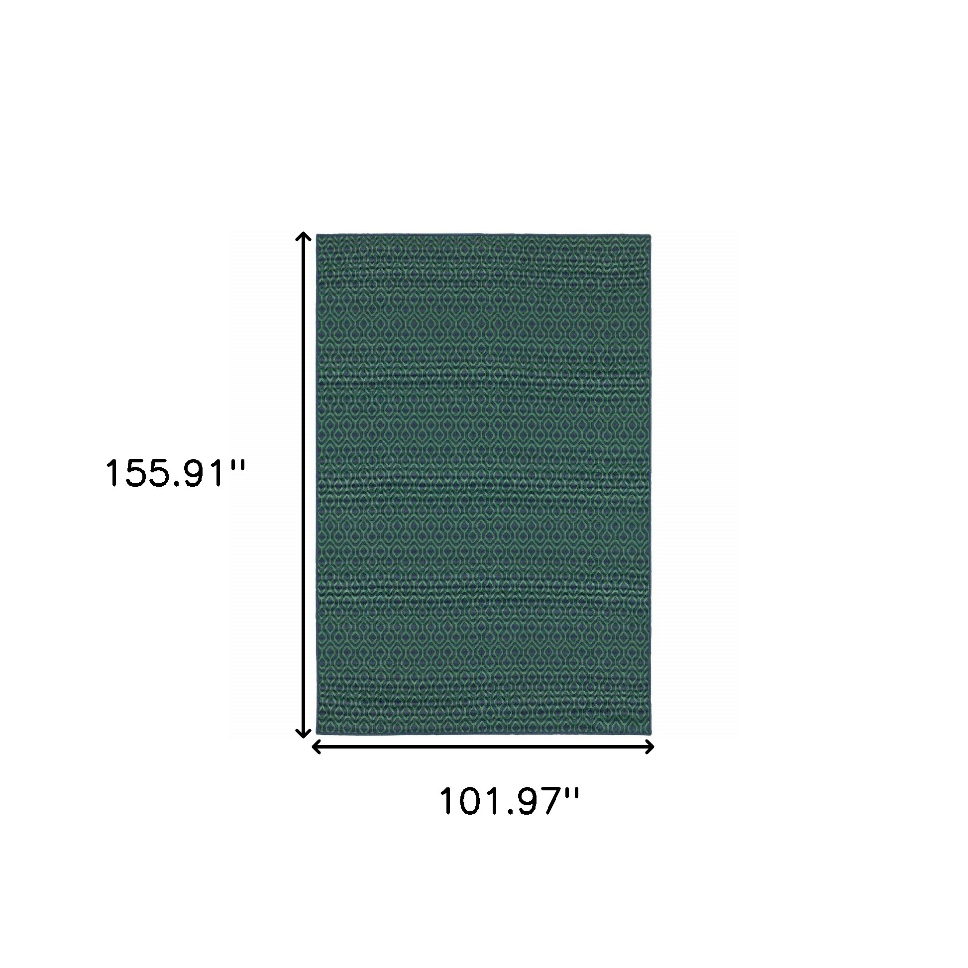 Add some artistry to your room with this 9-foot x 13-foot blue and green geometric stain resistant indoor outdoor area rug. This rectangle shaped rug features a geometric design in blue and green to give it visual interest. A classic shape marries with good looking design for your space Ideal for spaces with kids and pets, this rug is stain resistant to help repel stains and spilled liquids. Area Rugs help to give warmth and sense of home to your space. 0.15-inch H x 101.97-inch W x 155.91-inch D