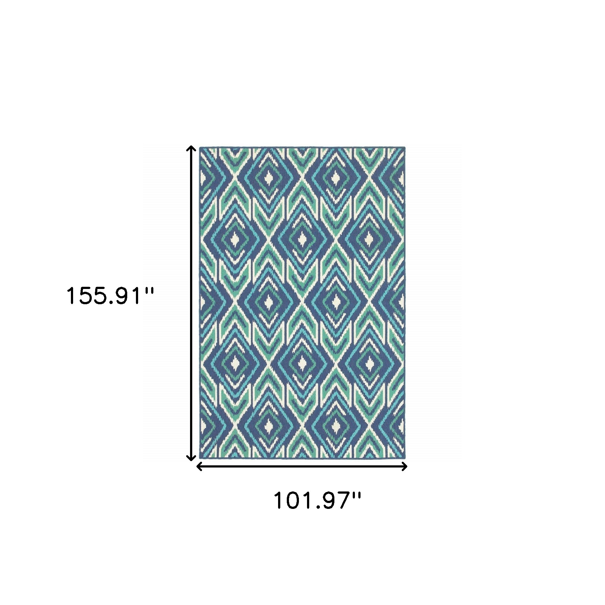 Add some artistry to your room with this 9-foot x 13-foot blue and ivory geometric stain resistant indoor outdoor area rug. This rectangle shaped rug features a geometric design in blue and ivory to give it visual interest. A classic shape marries with good looking design for your space Ideal for spaces with kids and pets, this rug is stain resistant to help repel stains and spilled liquids. Area Rugs help to give warmth and sense of home to your space. 0.15-inch H x 101.97-inch W x 155.91-inch D
