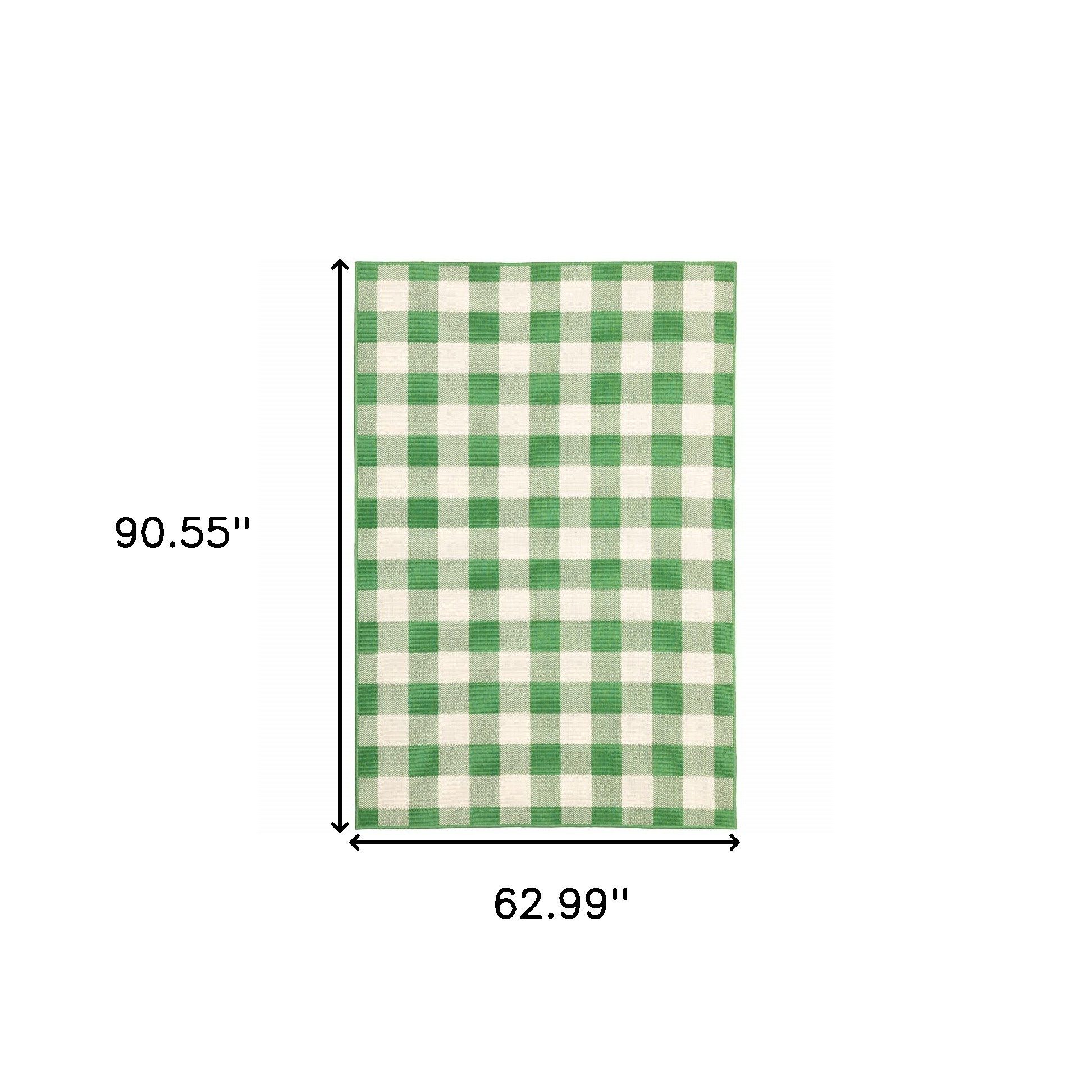 Add some artistry to your room with this 5-foot x 8-foot green and ivory geometric stain resistant indoor outdoor area rug. This rectangle shaped rug features a geometric design in green and ivory to give it visual interest. A classic shape marries with good looking design for your space Ideal for spaces with kids and pets, this rug is stain resistant to help repel stains and spilled liquids. Area Rugs help to give warmth and sense of home to your space. 0.15-inch H x 62.99-inch W x 90.55-inch D