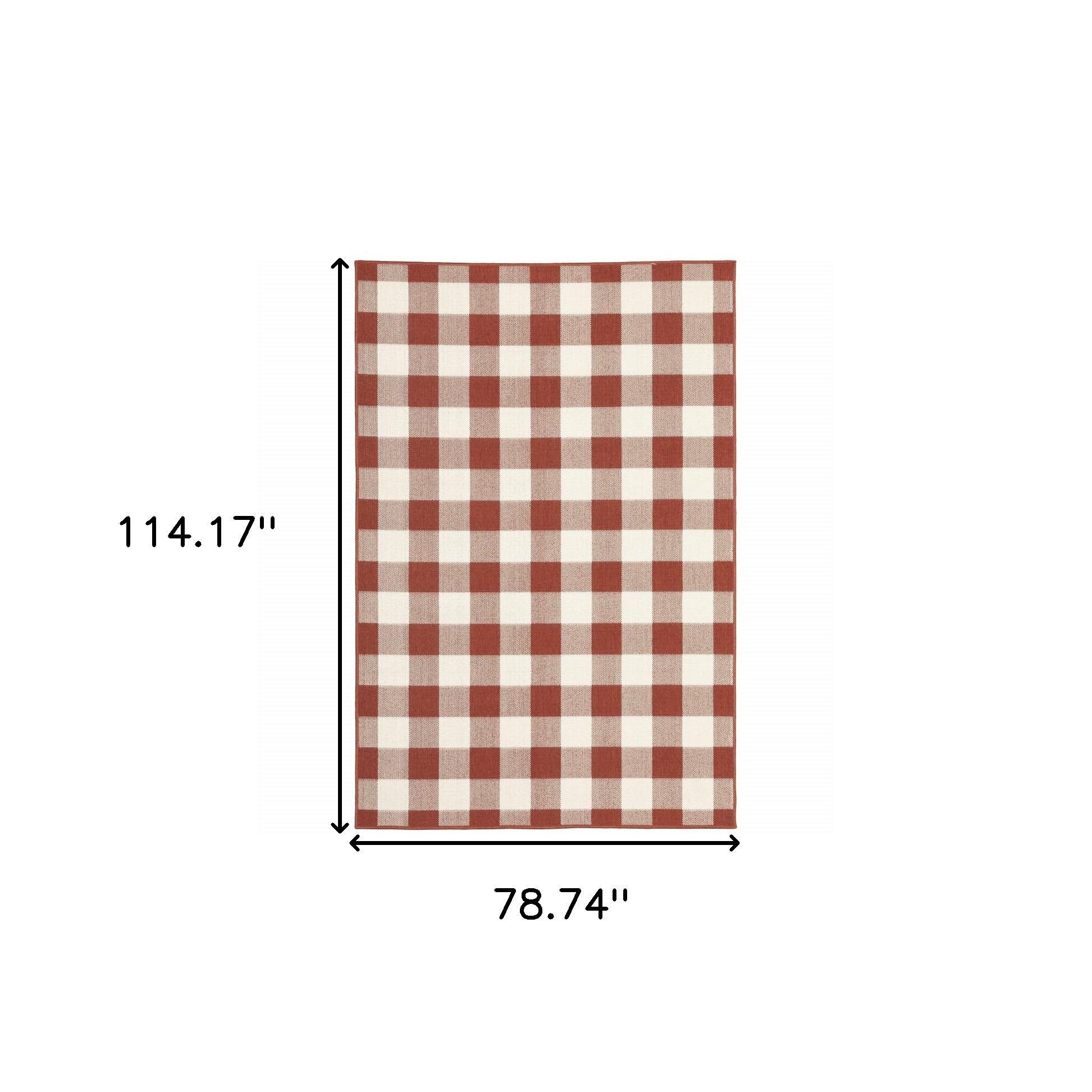 This 7-foot x 10-foot red and ivory geometric stain resistant indoor outdoor area rug, is a great way to add warmth to a room. This rectangle shaped rug features a geometric design in red and ivory to give it visual interest. A classic shape marries with good looking design for your space Ideal for spaces with kids and pets, this rug is stain resistant to help repel stains and spilled liquids. Place this area rug against a hardwood or tile floor and it will enliven your living space with style and sophistication. 0.15-inch H x 78.74-inch W x 114.17-inch D