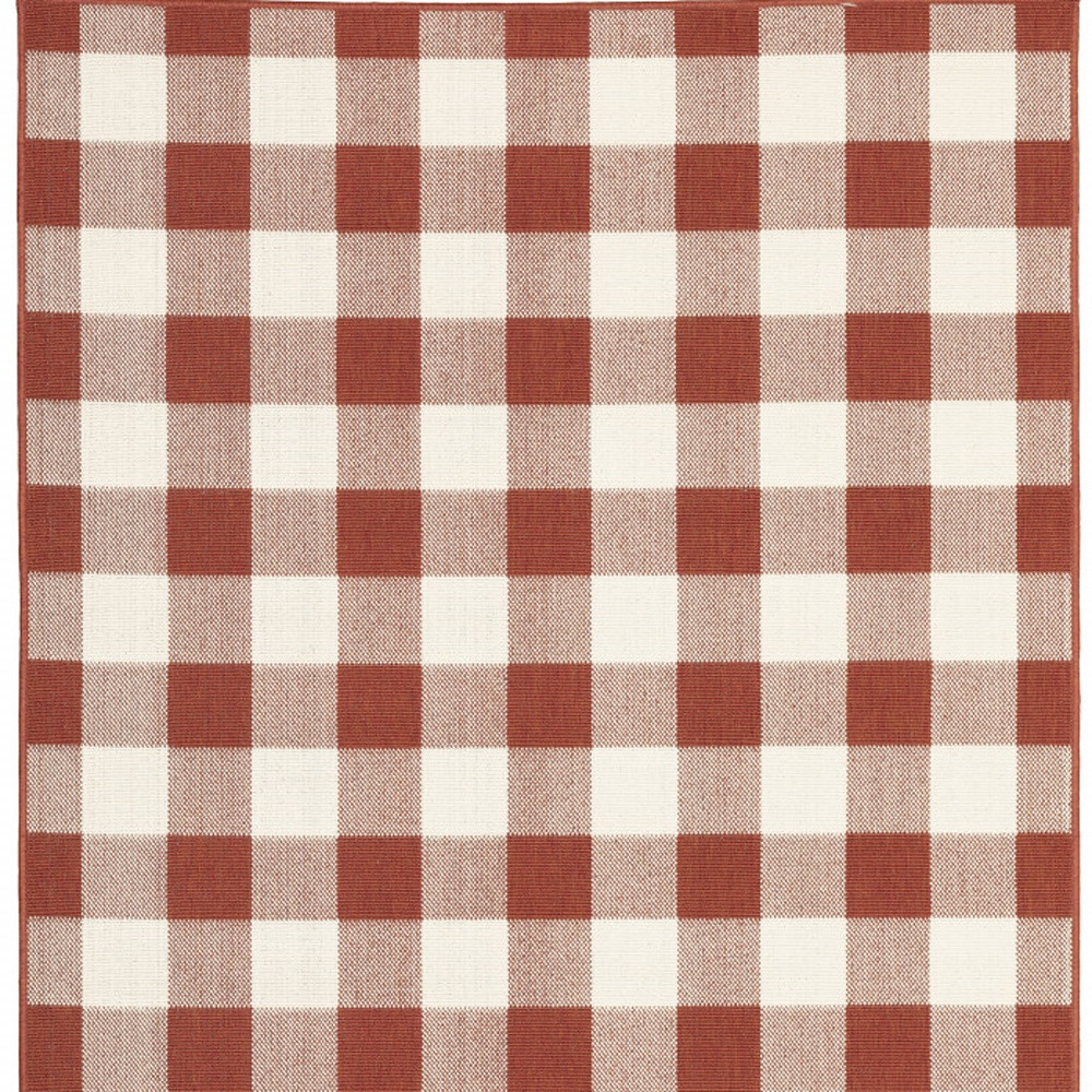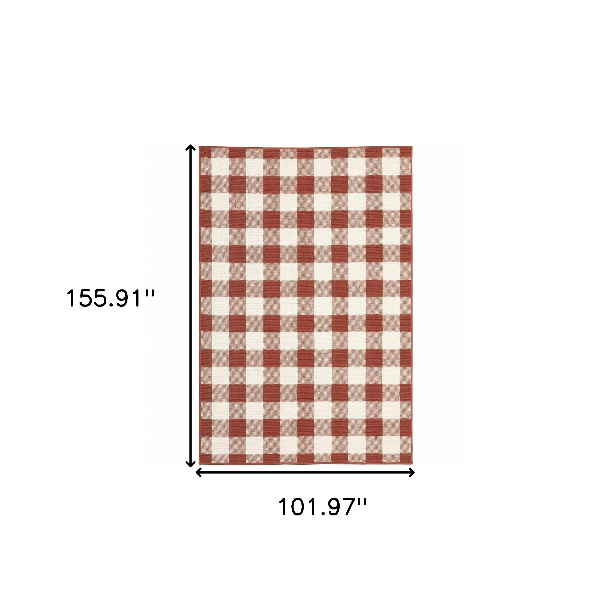 Add great coloration and comfortable texture to your space with this 9-foot x 13-foot red and ivory geometric indoor outdoor area rug. This rectangle shaped rug features a geometric design that will work well both indoors or out. A classic shape marries with good looking design for your living room, hall, bedroom, porch, patio, or poolside. Ideal for outdoor spaces or high traffic areas with kids and pets, this rug is made from heavy duty polypropylene that is stain resistant to help repel water, dirt, and stains. Makes a great way to dress up your patio, porch, or poolside, but also works well as a durable and easy to maintain option in the kitchen, family room, or mudroom. 101.97-inch h x 155.91-inch w x 0.15-inch d.
