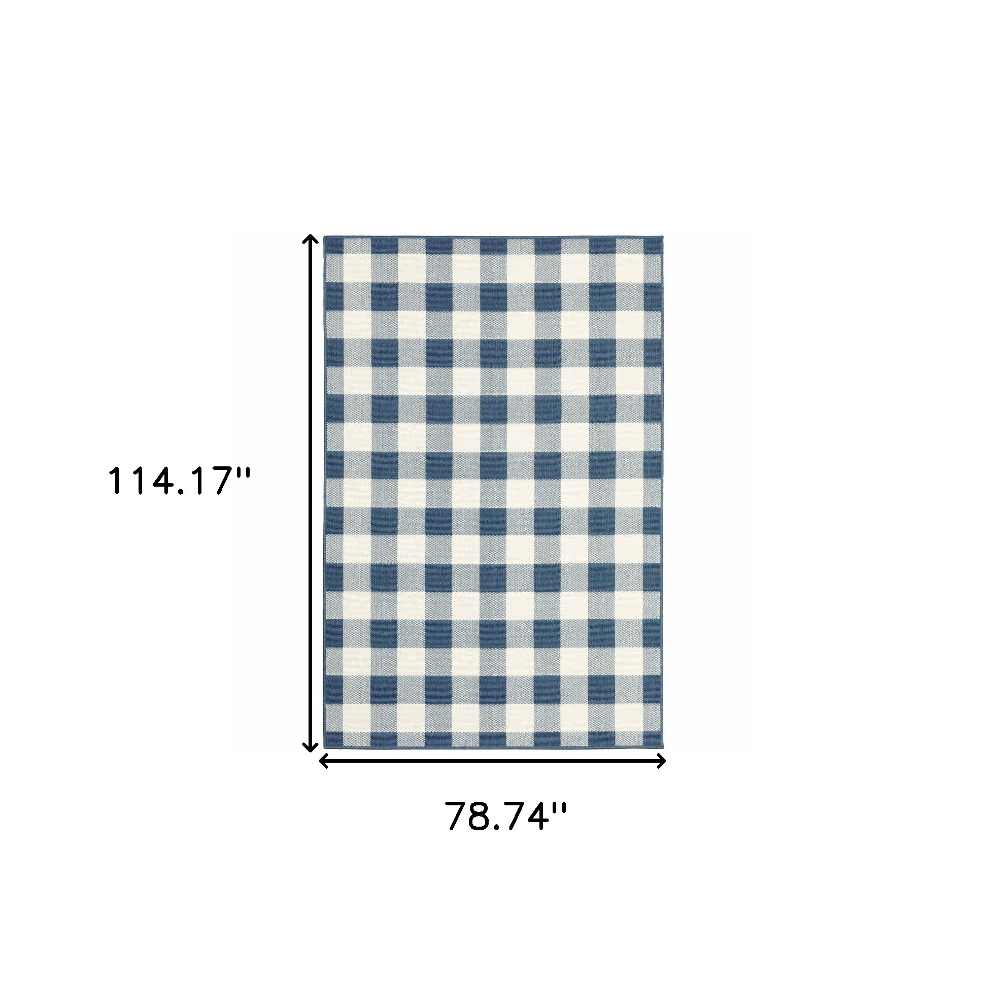 This 7-foot x 10-foot blue and ivory geometric stain resistant indoor outdoor area rug, is a great way to add warmth to a room. This rectangle shaped rug features a geometric design in blue and ivory to give it visual interest. A classic shape marries with good looking design for your space Ideal for spaces with kids and pets, this rug is stain resistant to help repel stains and spilled liquids. Place this area rug against a hardwood or tile floor and it will enliven your living space with style and sophistication. 0.15-inch H x 78.74-inch W x 114.17-inch D