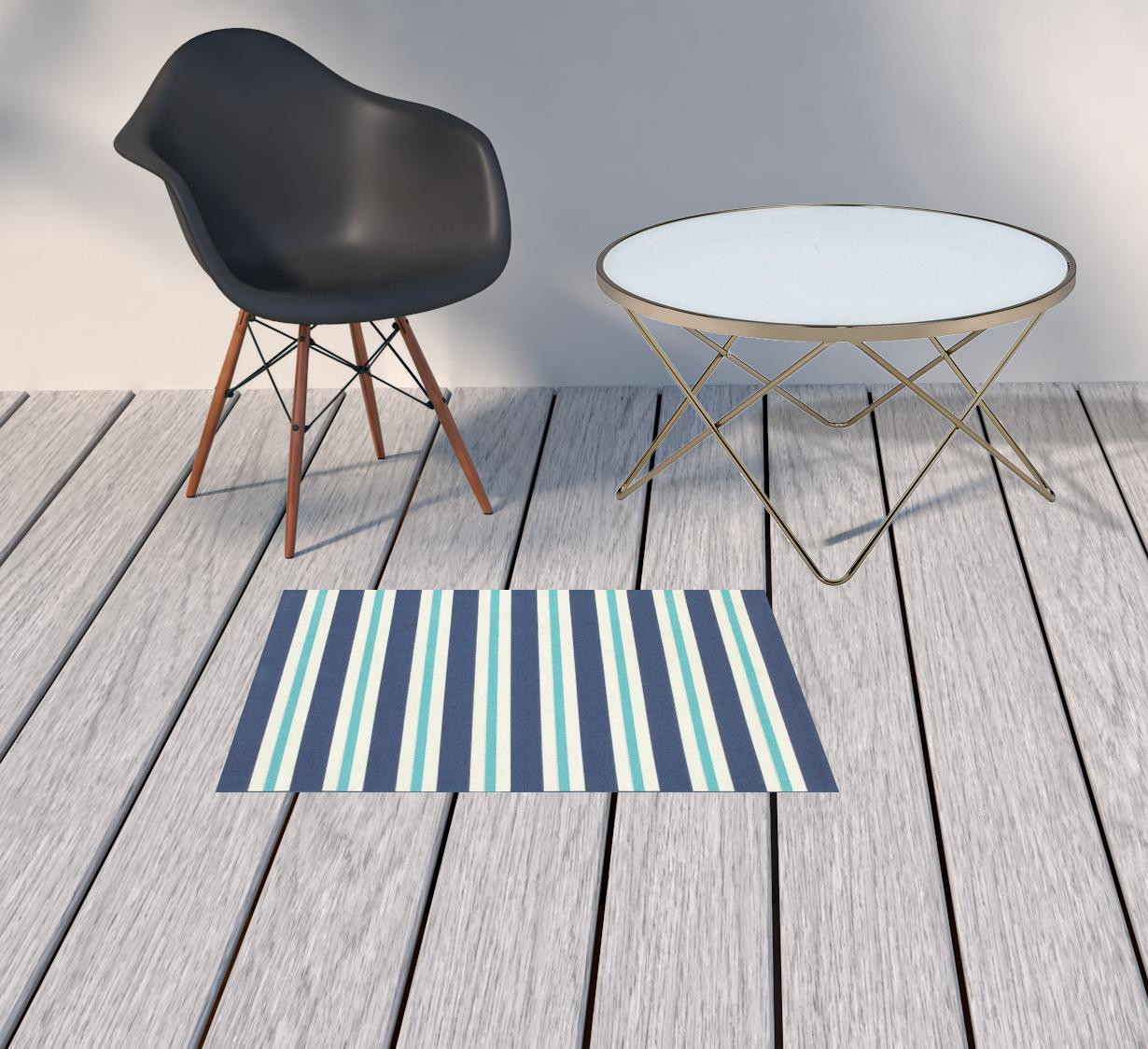 Add some artistry to your room with this 2-foot x 3-foot blue and ivory geometric stain resistant indoor outdoor area rug. This rectangle shaped rug features a geometric design in blue and ivory to give it visual interest. A classic shape marries with good looking design for your space Ideal for spaces with kids and pets, this rug is stain resistant to help repel stains and spilled liquids. Area Rugs help to give warmth and sense of home to your space. 0.15-inch H x 22.05-inch W x 33.86-inch D