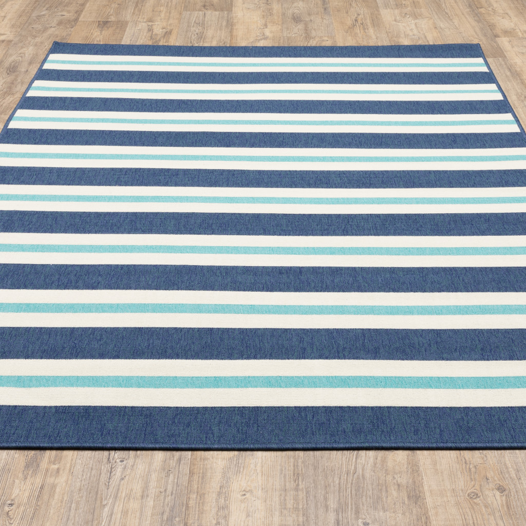 Add some artistry to your room with this 5-foot x 8-foot blue and ivory geometric stain resistant indoor outdoor area rug. This rectangle shaped rug features a geometric design in blue and ivory to give it visual interest. A classic shape marries with good looking design for your space Ideal for spaces with kids and pets, this rug is stain resistant to help repel stains and spilled liquids. Area Rugs help to give warmth and sense of home to your space. 0.15-inch H x 62.99-inch W x 90.55-inch D