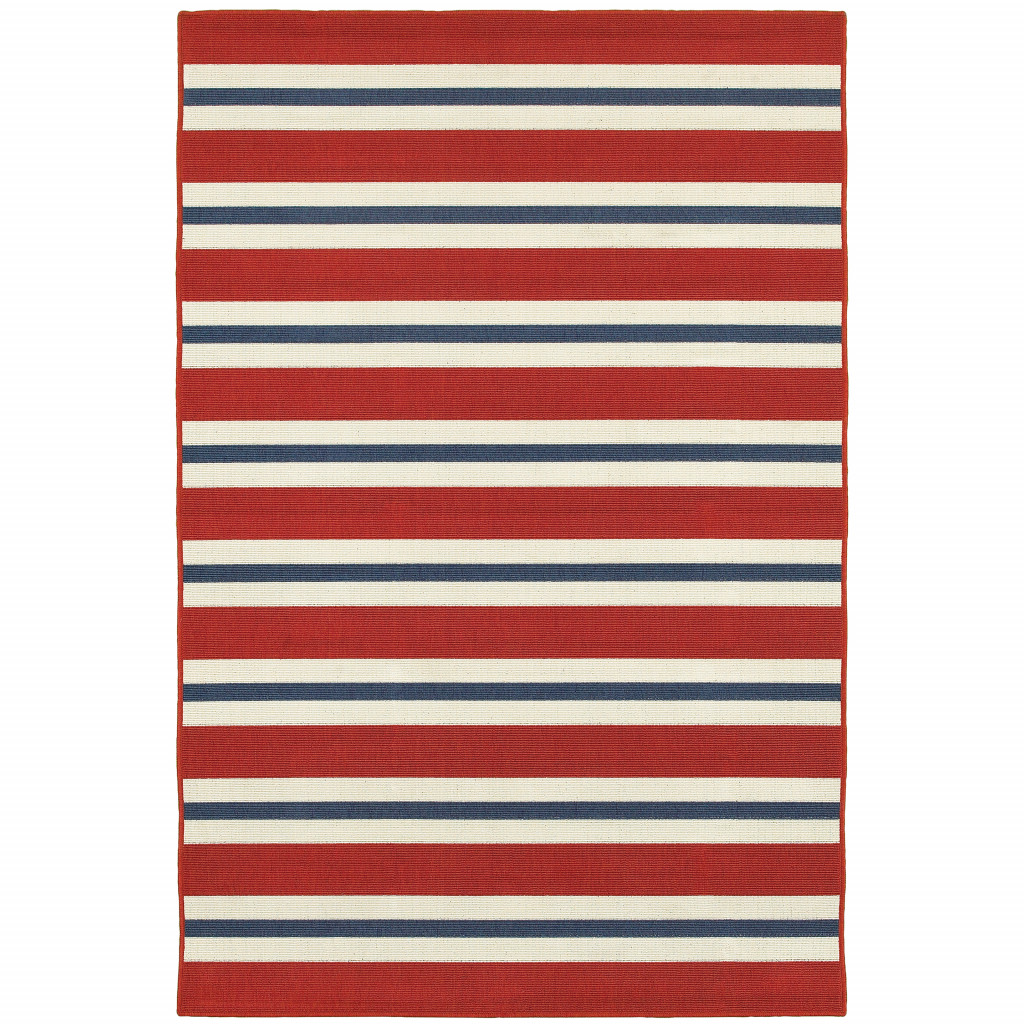 Set an inviting tone in your space with this 8-foot x 11-foot red and ivory geometric stain resistant indoor outdoor area rug. This rectangle shaped rug features a geometric design in red and ivory to give it visual interest. A classic shape marries with good looking design for your space Ideal for spaces with kids and pets, this rug is stain resistant to help repel stains and spilled liquids. Area Rugs help to give warmth and sense of home to your space. 0.15-inch H x 94.49-inch W x 129.92-inch D