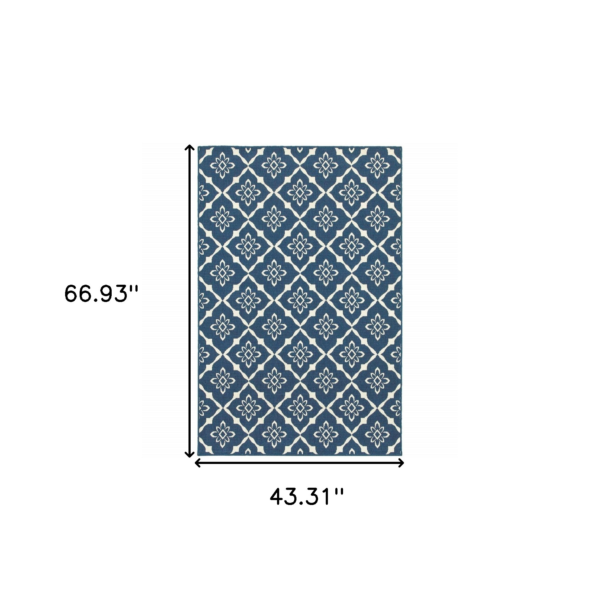 Add great coloration and comfortable texture to your space with this 4-foot x 6-foot blue and ivory floral stain resistant indoor outdoor area rug. This rectangle shaped rug features a floral design in blue and ivory to give it visual interest. A classic shape marries with good looking design for your space Ideal for spaces with kids and pets, this rug is stain resistant to help repel stains and spilled liquids. Area Rugs help to give warmth and sense of home to your space. 0.15-inch H x 43.31-inch W x 66.93-inch D
