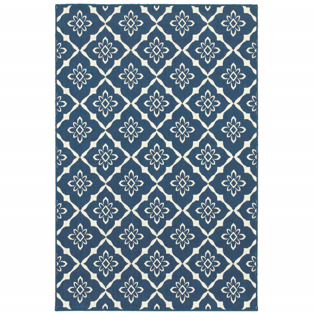 Add some artistry to your room with this 5-foot x 8-foot blue and ivory floral stain resistant indoor outdoor area rug. This rectangle shaped rug features a floral design in blue and ivory to give it visual interest. A classic shape marries with good looking design for your space Ideal for spaces with kids and pets, this rug is stain resistant to help repel stains and spilled liquids. Place this area rug against a hardwood or tile floor and it will enliven your living space with style and sophistication. 0.15-inch H x 62.99-inch W x 90.55-inch D