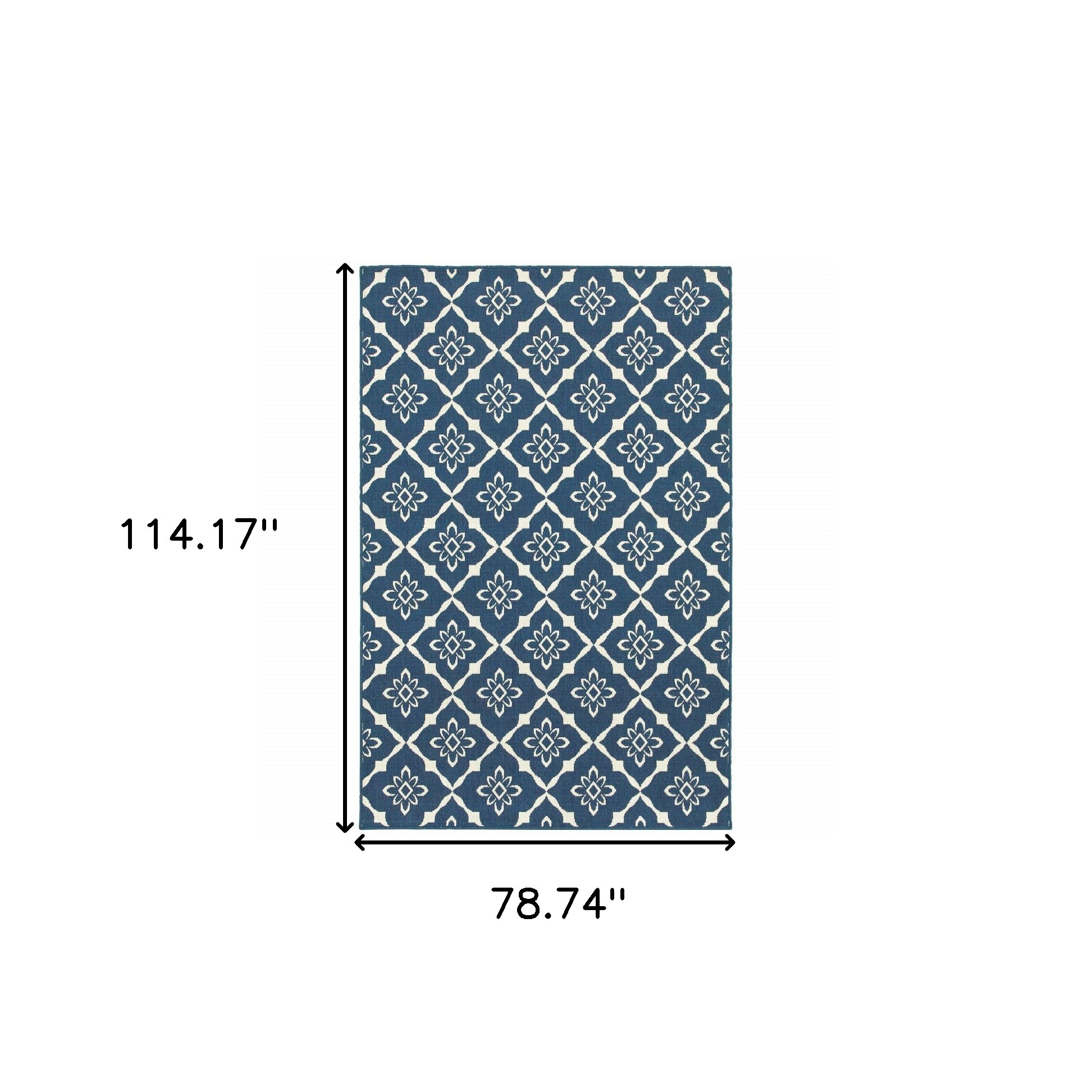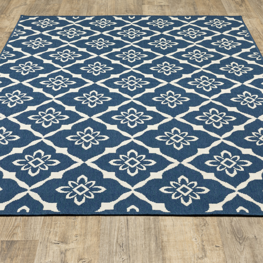 This 7-foot x 10-foot blue and ivory floral stain resistant indoor outdoor area rug, is a great way to add warmth to a room. This rectangle shaped rug features a floral design in blue and ivory to give it visual interest. A classic shape marries with good looking design for your space Ideal for spaces with kids and pets, this rug is stain resistant to help repel stains and spilled liquids. Area Rugs help to give warmth and sense of home to your space. 0.15-inch H x 78.74-inch W x 114.17-inch D