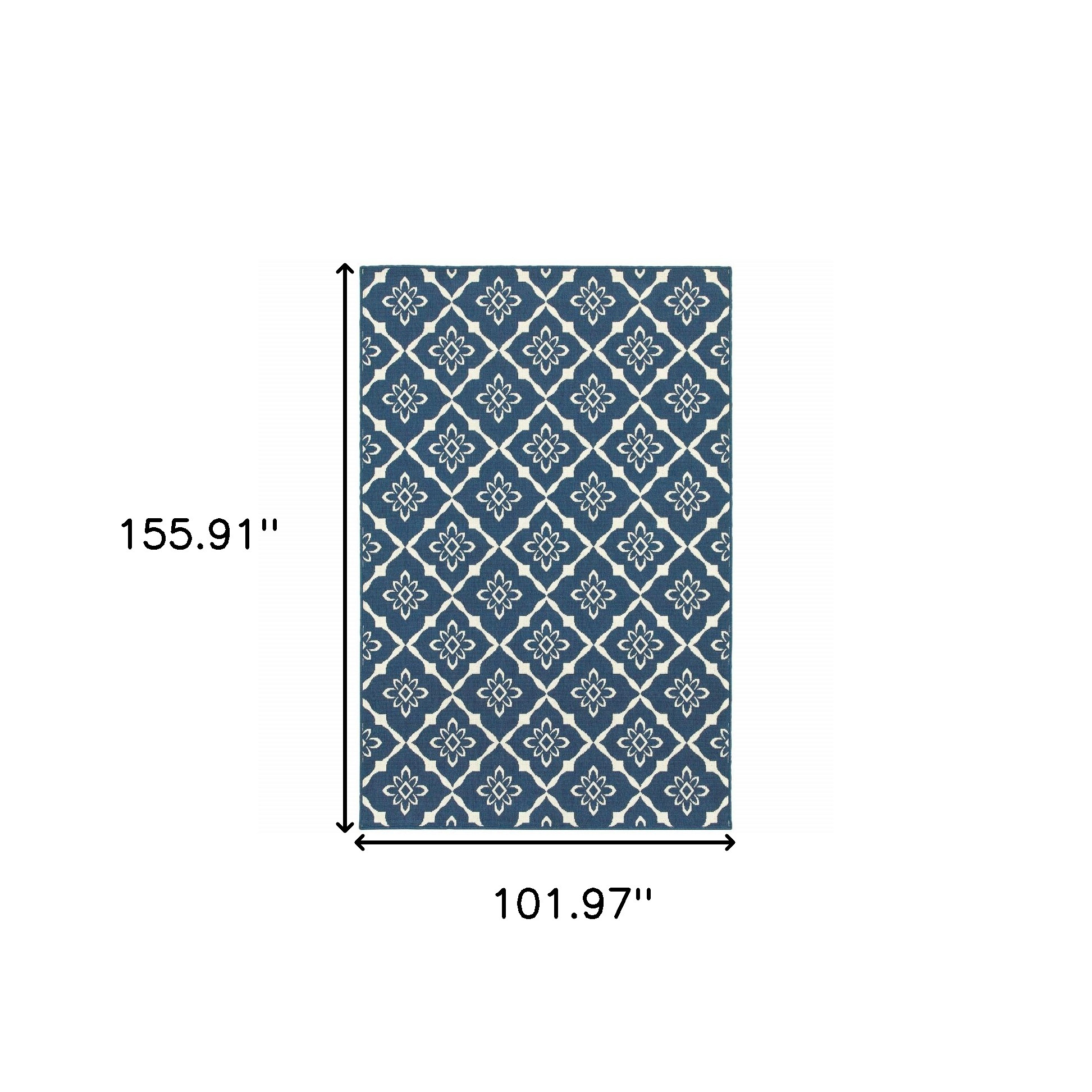 This 9-foot x 13-foot blue and ivory floral stain resistant indoor outdoor area rug, is a great way to add warmth to a room. This rectangle shaped rug features a floral design in blue and ivory to give it visual interest. A classic shape marries with good looking design for your space Ideal for spaces with kids and pets, this rug is stain resistant to help repel stains and spilled liquids. Area Rugs help to give warmth and sense of home to your space. 0.15-inch H x 101.97-inch W x 155.91-inch D