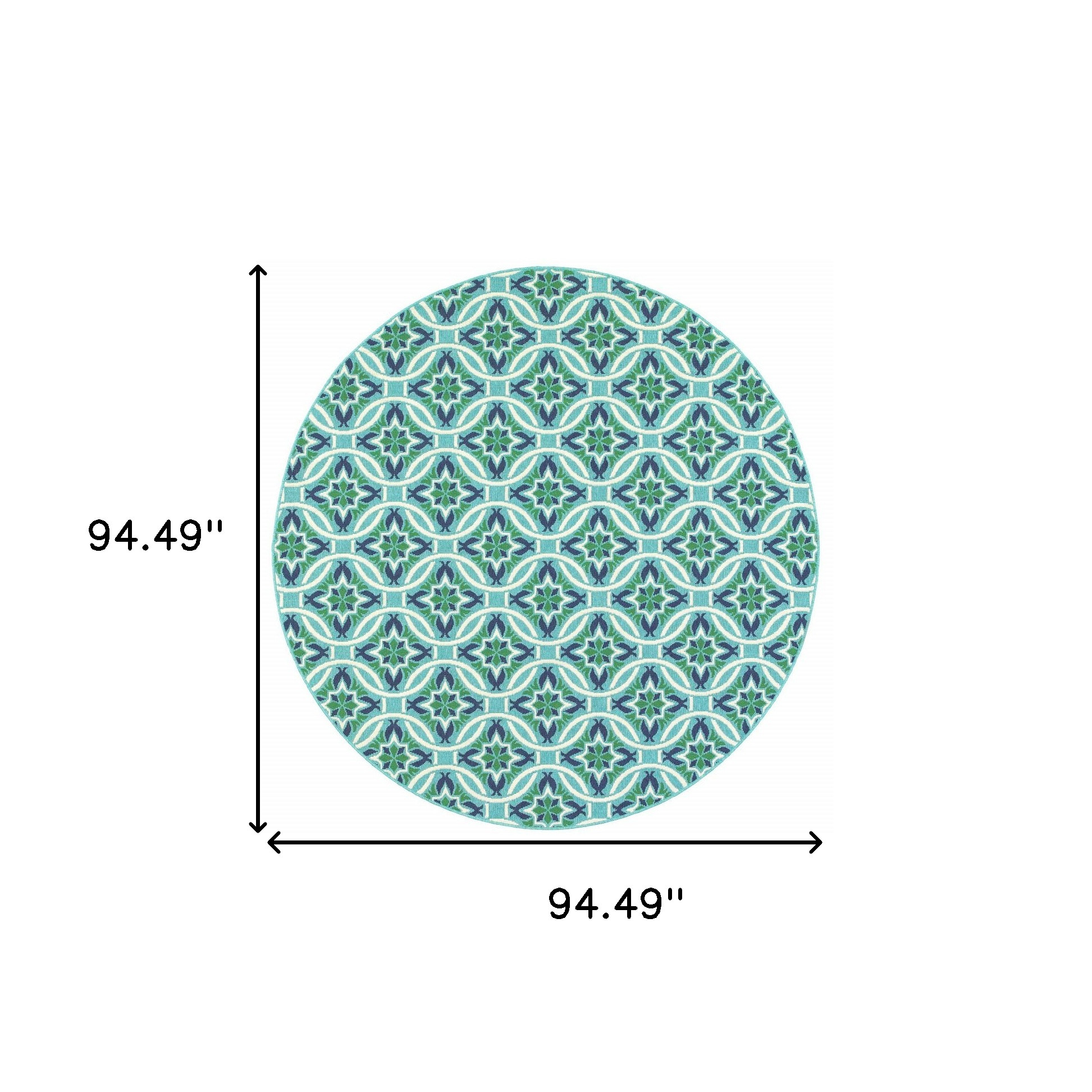 Add great coloration and comfortable texture to your space with this 8-foot x 8-foot blue and green round geometric stain resistant indoor outdoor area rug. This geometric round shaped rug features a geometric pattern in blue and green that combines a good looking print with a unique and updated shape. The mix of shape, color, and design gives this rug refreshing visual interest. Ideal for spaces with kids and pets, this rug is stain resistant to help repel stains and spilled liquids. Place this area rug against a hardwood or tile floor and it will enliven your living space with style and sophistication. 0.15-inch H x 94.49-inch W x 94.49-inch D