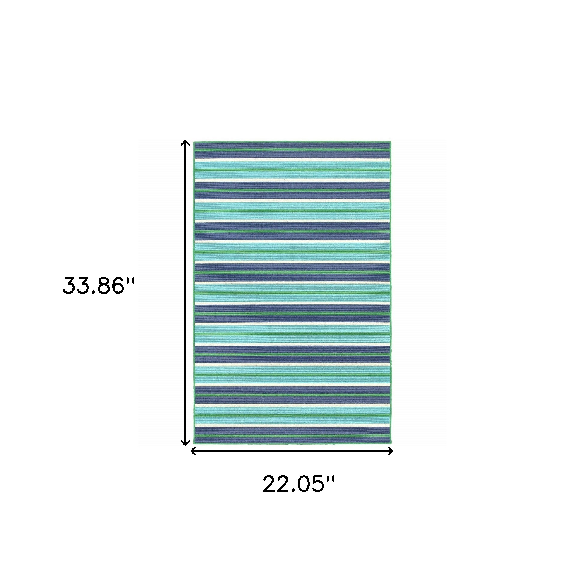 2' X 3' Blue and Green Geometric Stain Resistant Indoor Outdoor Area Rug