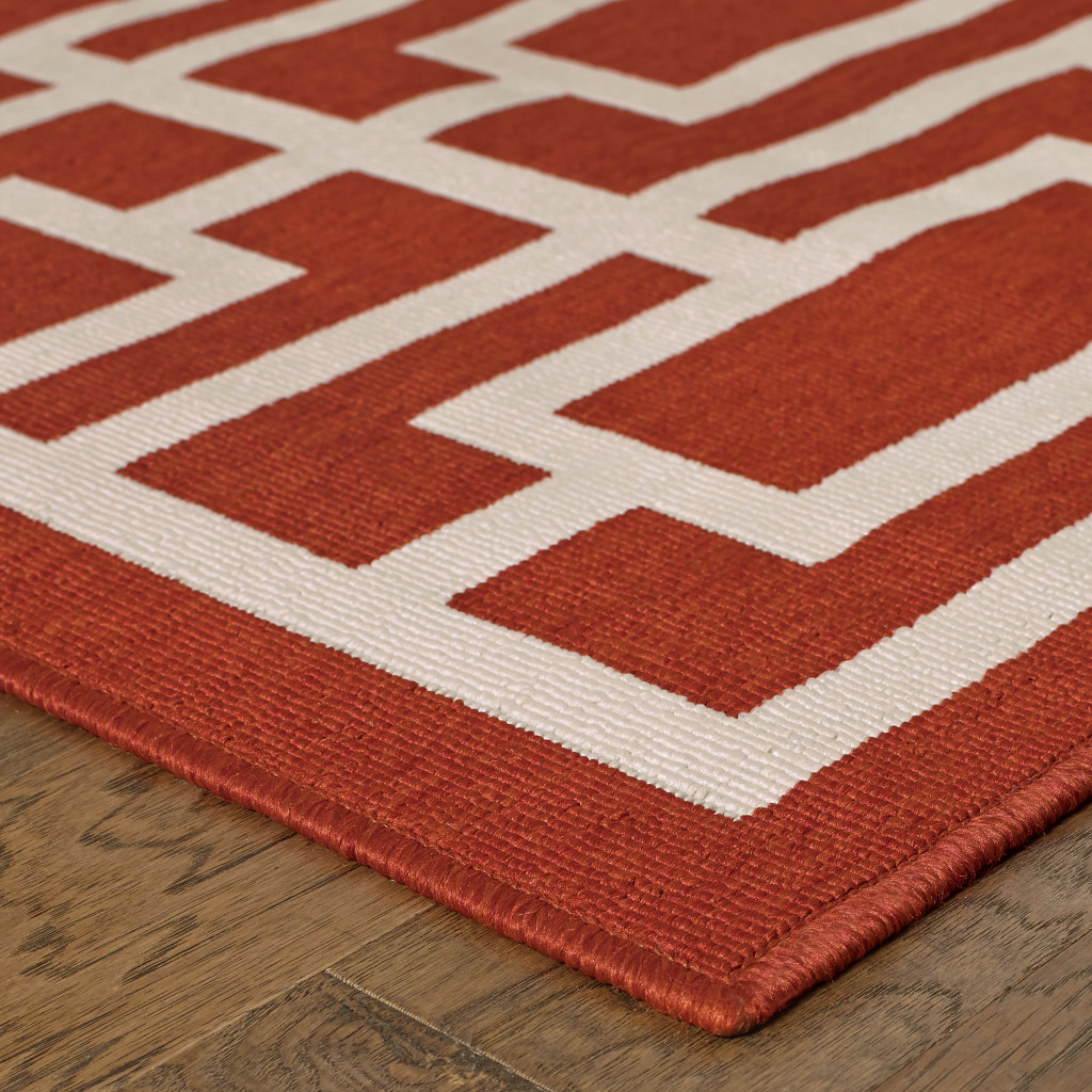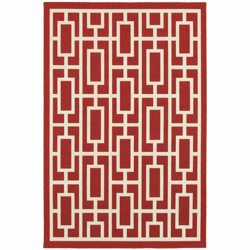 Meridian Indoor/Outdoor Geometric 9754R 5'3X7'6 Red/ Ivory Power-Loomed Rug