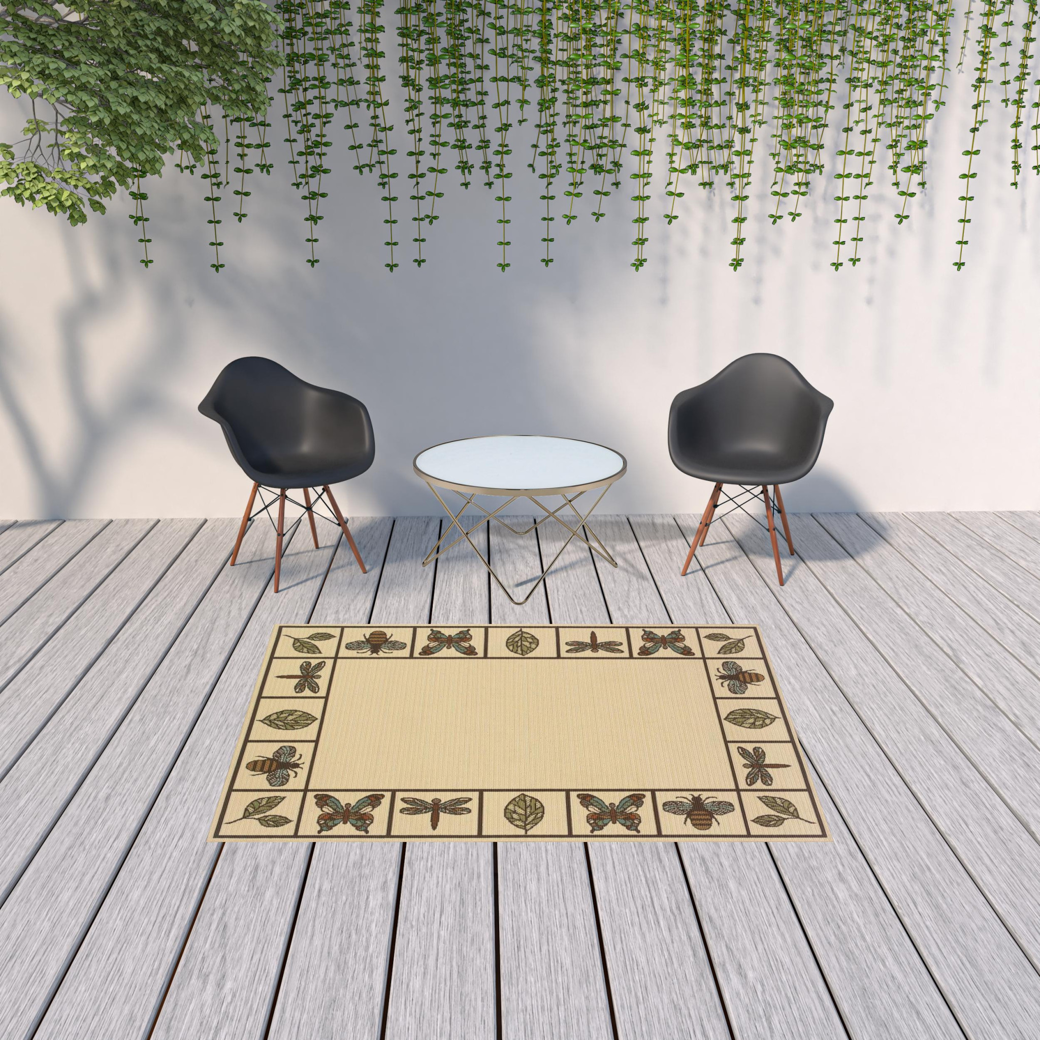 Set an inviting tone in your space with this 5-foot x 8-foot brown and ivory abstract stain resistant indoor outdoor area rug. This rectangle shaped rug features a abstract design in brown and ivory to give it visual interest. A classic shape marries with good looking design for your space Ideal for spaces with kids and pets, this rug is stain resistant to help repel stains and spilled liquids. Area Rugs help to give warmth and sense of home to your space. 0.16-inch H x 62.99-inch W x 90.55-inch D