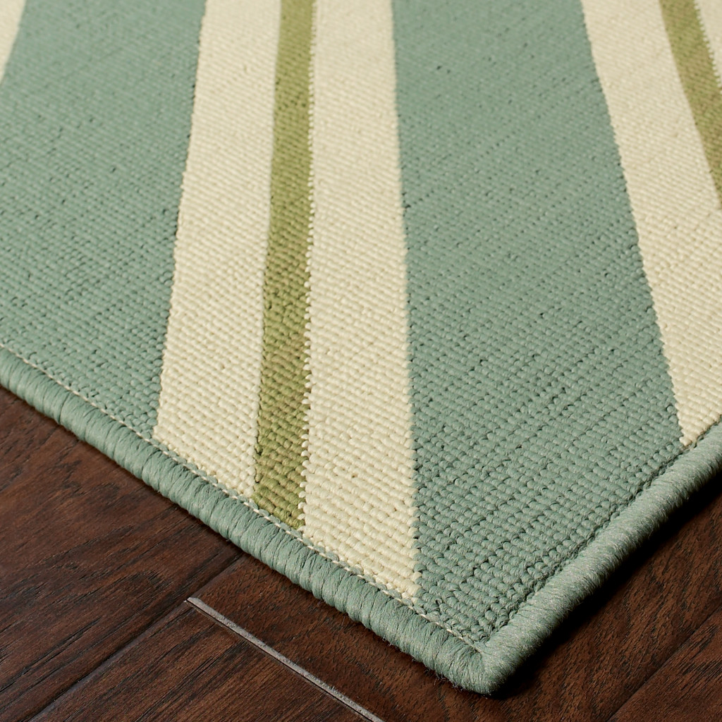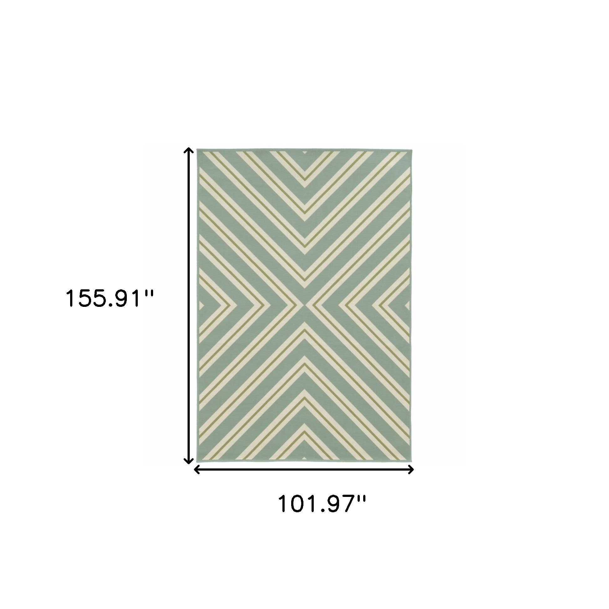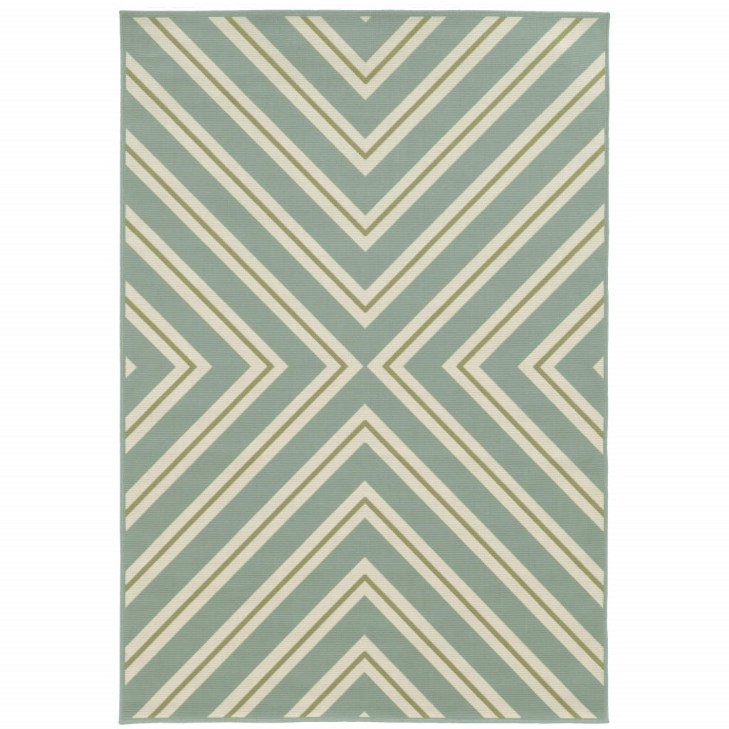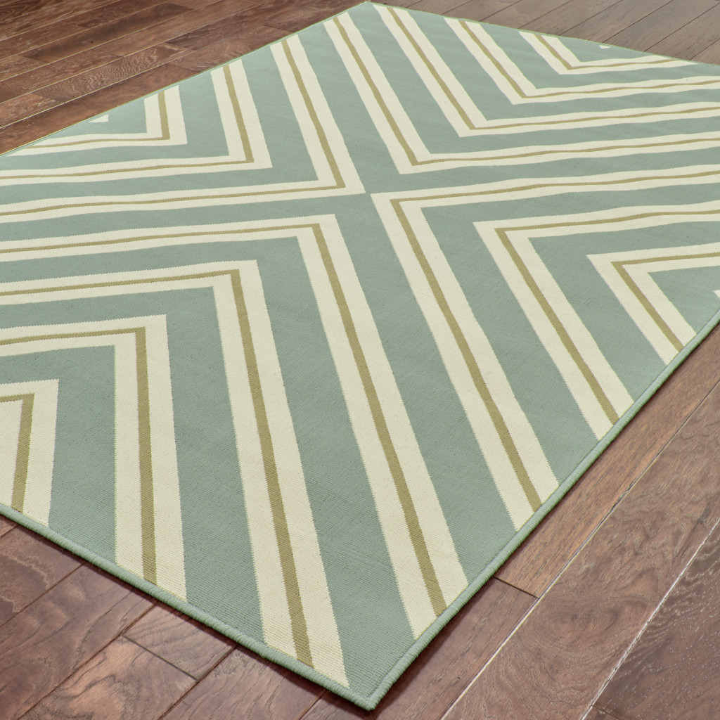 Set an inviting tone in your space with this 9-foot x 13-foot blue and green geometric stain resistant indoor outdoor area rug. This rectangle shaped rug features a geometric design in blue and green to give it visual interest. A classic shape marries with good looking design for your space Ideal for spaces with kids and pets, this rug is stain resistant to help repel stains and spilled liquids. Area Rugs help to give warmth and sense of home to your space. 0.16-inch H x 101.97-inch W x 155.91-inch D