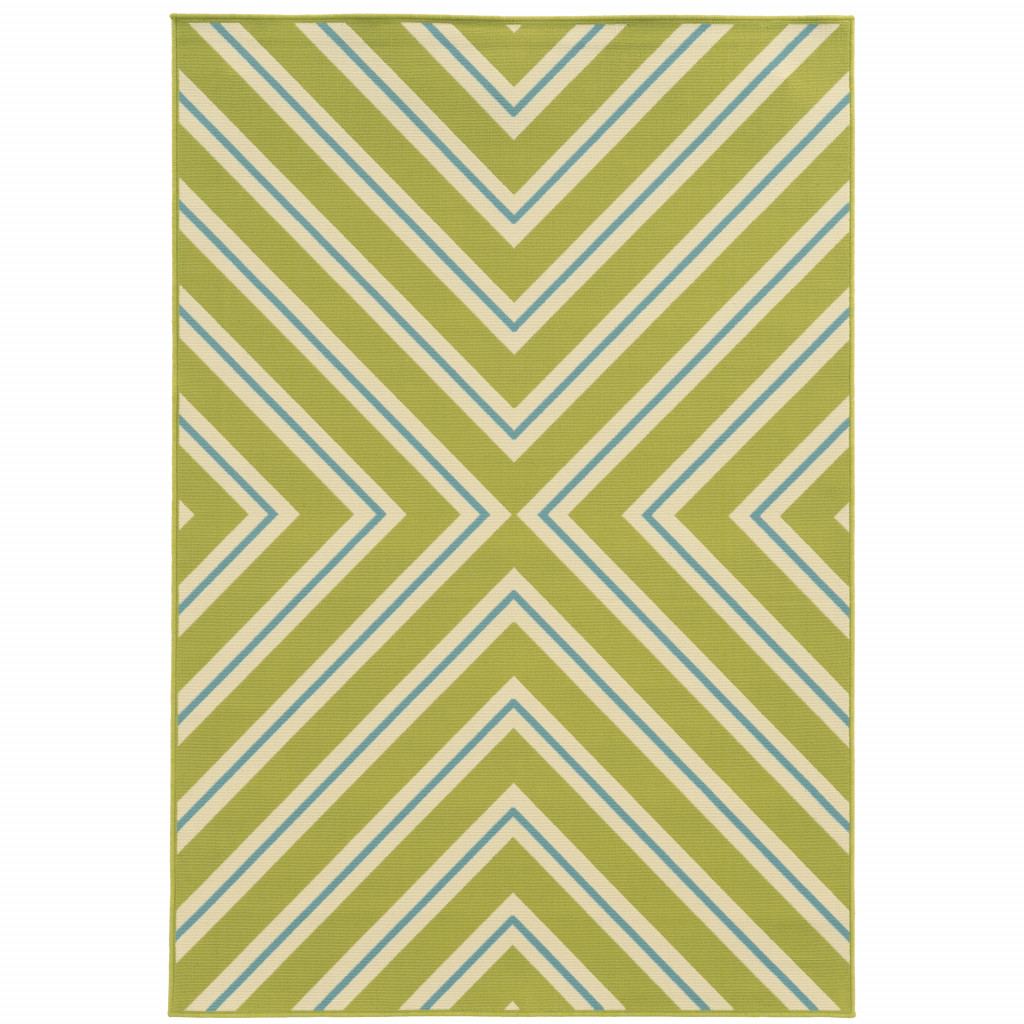 Add great coloration and comfortable texture to your space with this 9-foot x 13-foot blue and green geometric stain resistant indoor outdoor area rug. This rectangle shaped rug features a geometric design in blue and green to give it visual interest. A classic shape marries with good looking design for your space Ideal for spaces with kids and pets, this rug is stain resistant to help repel stains and spilled liquids. Place this area rug against a hardwood or tile floor and it will enliven your living space with style and sophistication. 0.16-inch H x 101.97-inch W x 155.91-inch D