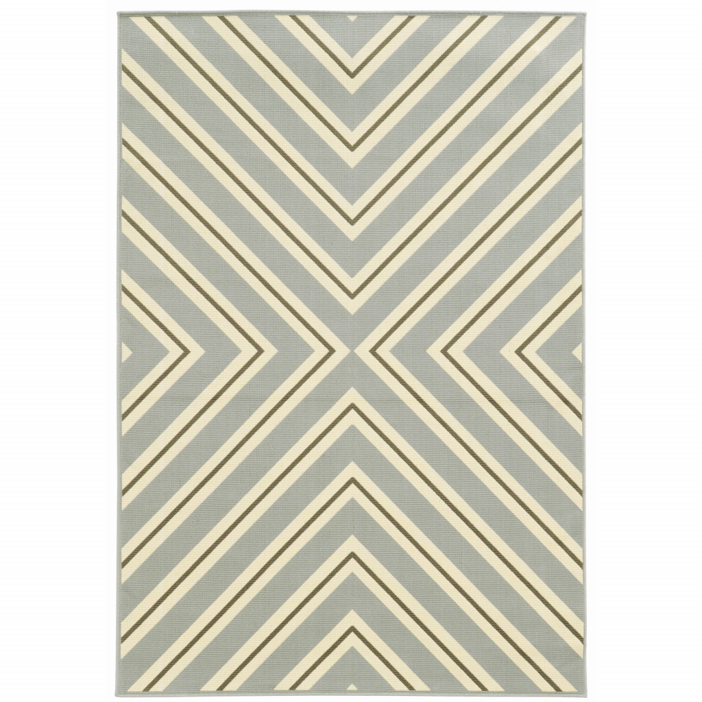 Add great coloration and comfortable texture to your space with this 9-foot x 13-foot gray and ivory geometric stain resistant indoor outdoor area rug. This rectangle shaped rug features a geometric design in gray and ivory to give it visual interest. A classic shape marries with good looking design for your space Ideal for spaces with kids and pets, this rug is stain resistant to help repel stains and spilled liquids. Area Rugs help to give warmth and sense of home to your space. 0.16-inch H x 101.97-inch W x 155.91-inch D