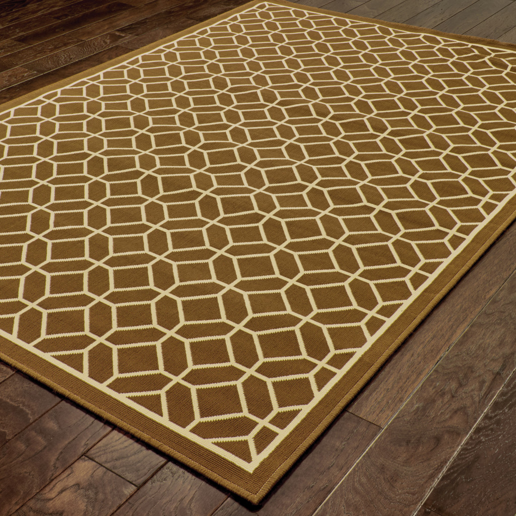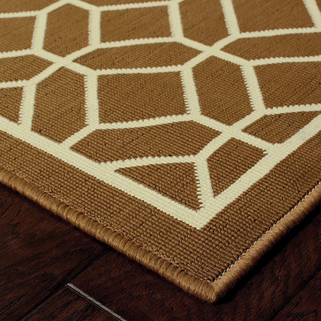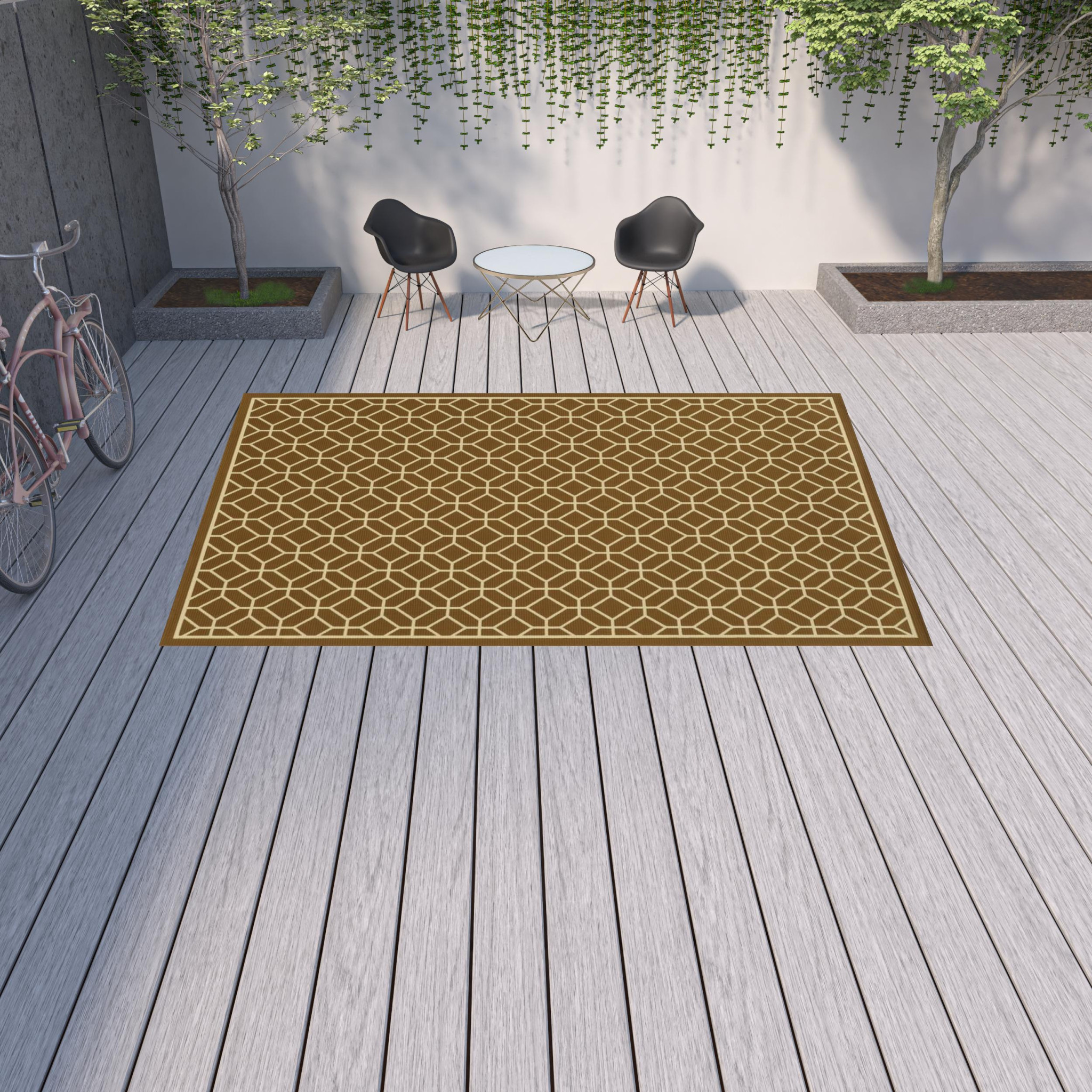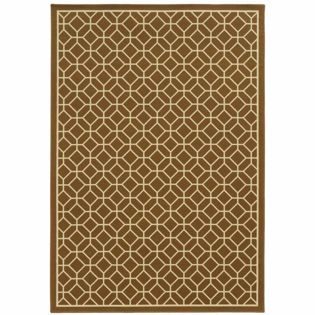 Add some artistry to your room with this 9-foot x 13-foot brown and ivory geometric stain resistant indoor outdoor area rug. This rectangle shaped rug features a geometric design in brown and ivory to give it visual interest. A classic shape marries with good looking design for your space Ideal for spaces with kids and pets, this rug is stain resistant to help repel stains and spilled liquids. Place this area rug against a hardwood or tile floor and it will enliven your living space with style and sophistication. 0.16-inch H x 101.97-inch W x 155.91-inch D